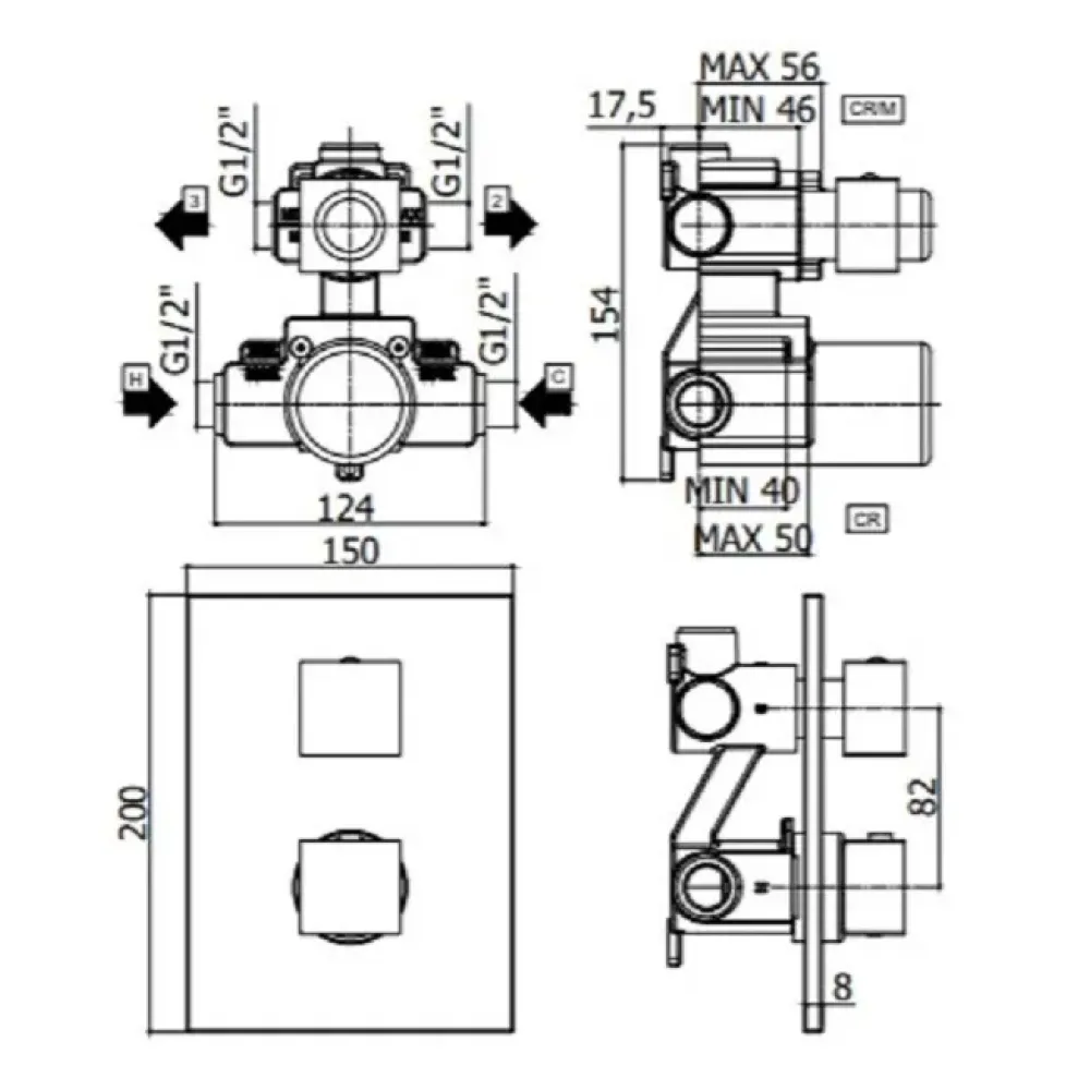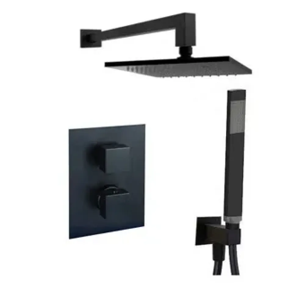 Смеситель для душа Paffoni Elle LEQ518NO/M термостат встраиваемый на 2 выхода с накладкой из нержавеющей стали 150х200мм, девиатор-картридж, 2 положения+стоп, черный матовый
