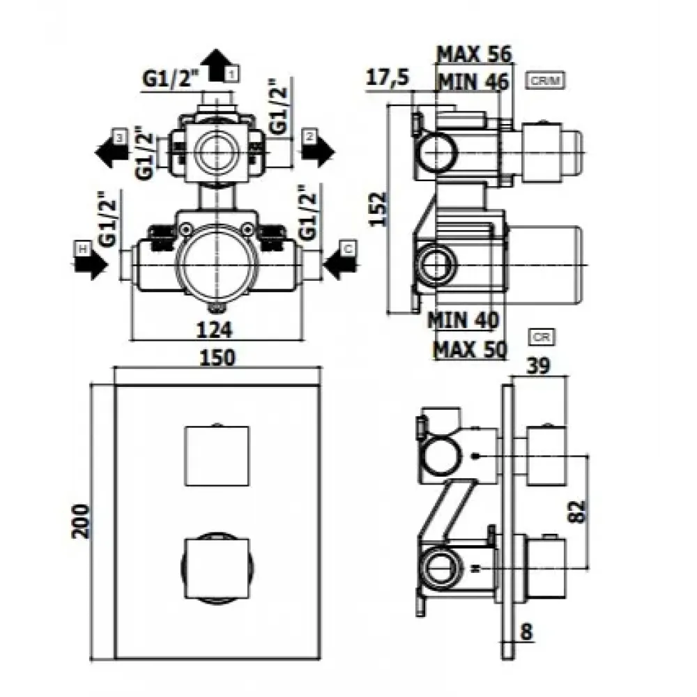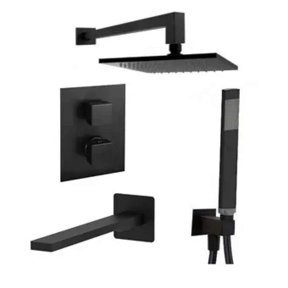 Смеситель для душа Paffoni Level LEQ519NO/M термостат встраиваемый на 3 выхода с накладкой из нержавеющей стали 150х200мм, девиатор-картридж, 3 положения+3 комбо со стоп, черный матовый