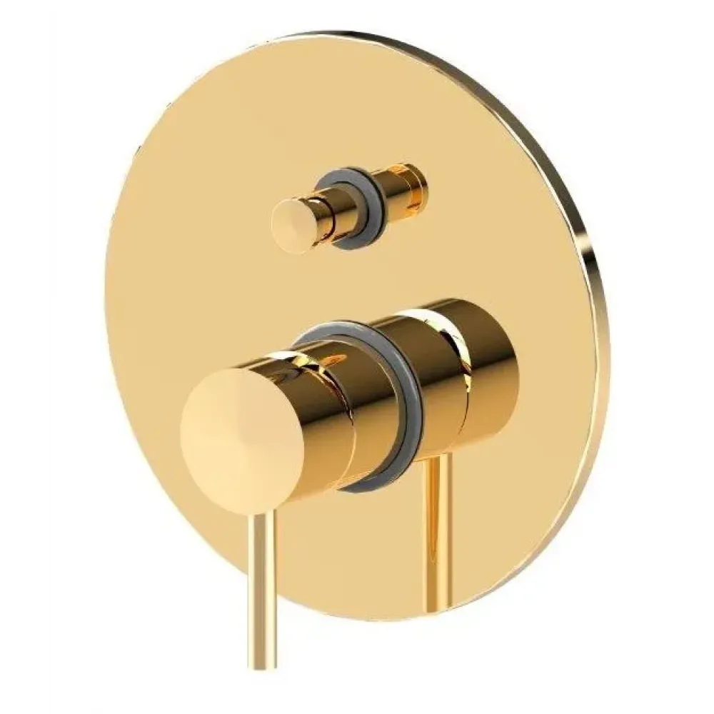 Смеситель для душа Paffoni Light LIG015HG встраиваемый на 2 выхода с накладкой из металла диаметр 200мм, девиатор-кнопка, золото медовое