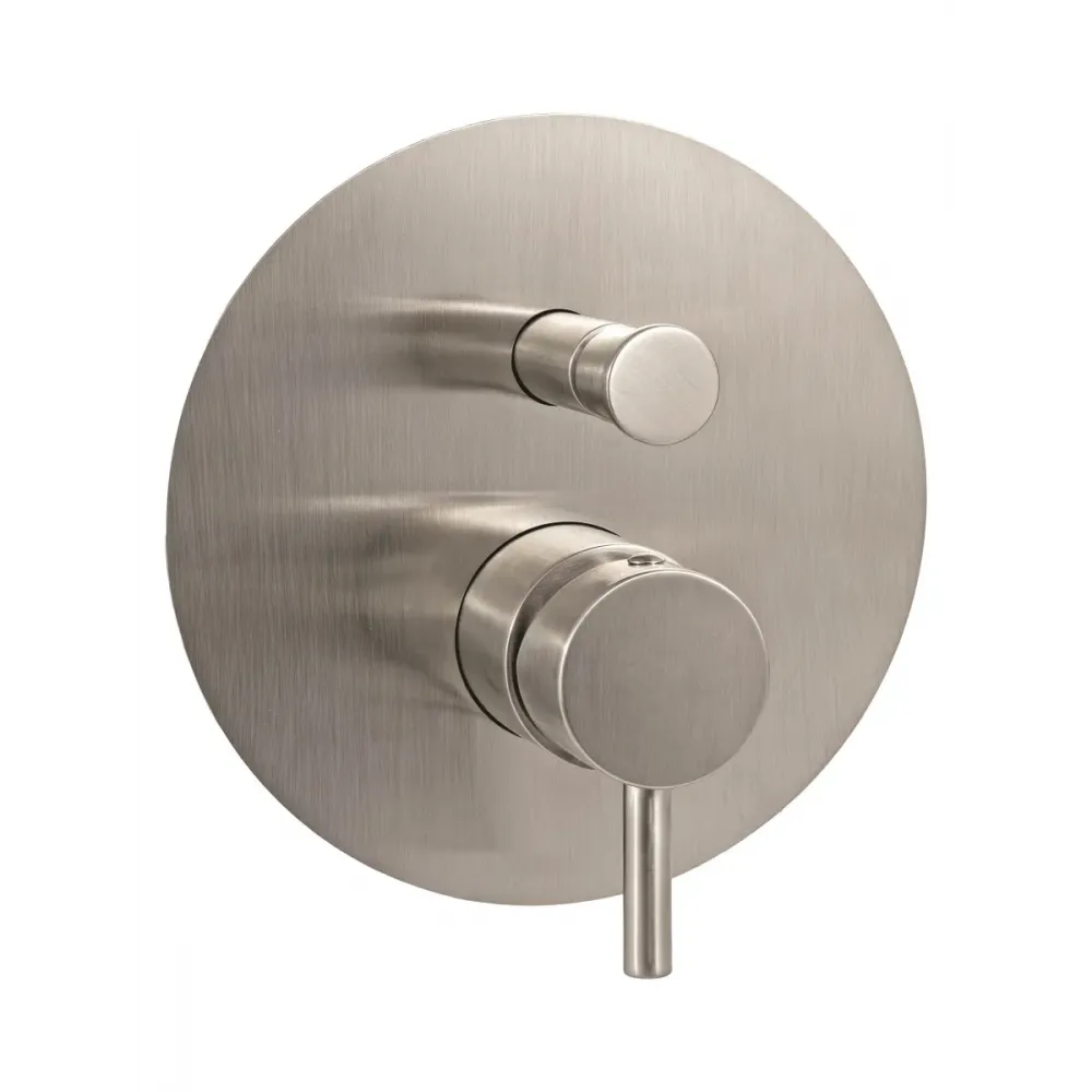 Смеситель для душа Paffoni Light LIG015ST встраиваемый на 2 выхода с накладкой из металла диаметр 200мм, девиатор-кнопка, Steel looking