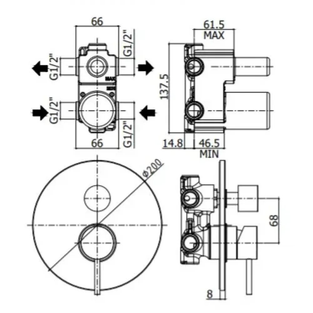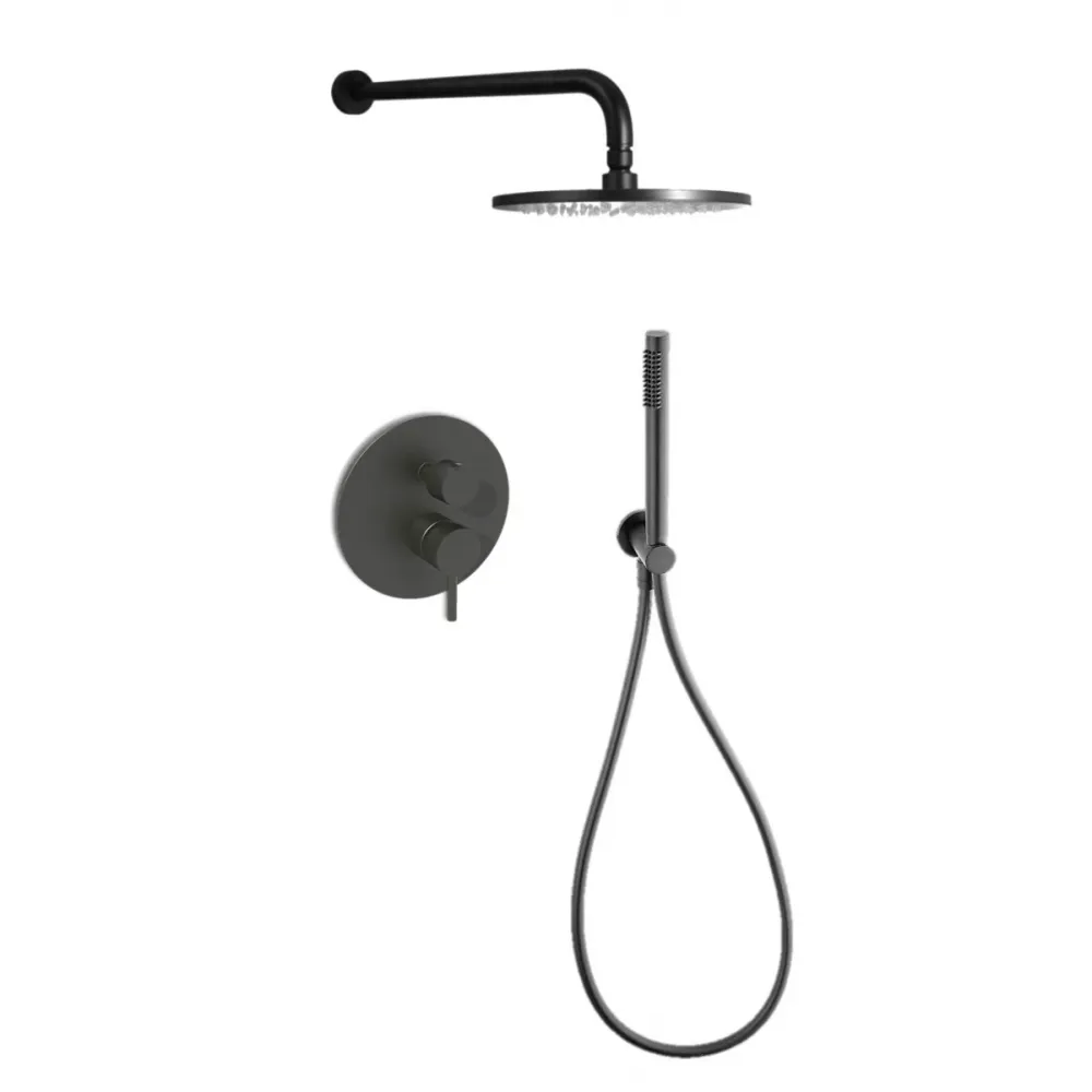 Смеситель для душа Paffoni Light LIG018NO встраиваемый на 2 выхода с накладкой из металла диаметр 200мм, девиатор-картридж, 2 положения+1 комбо, черный матовый