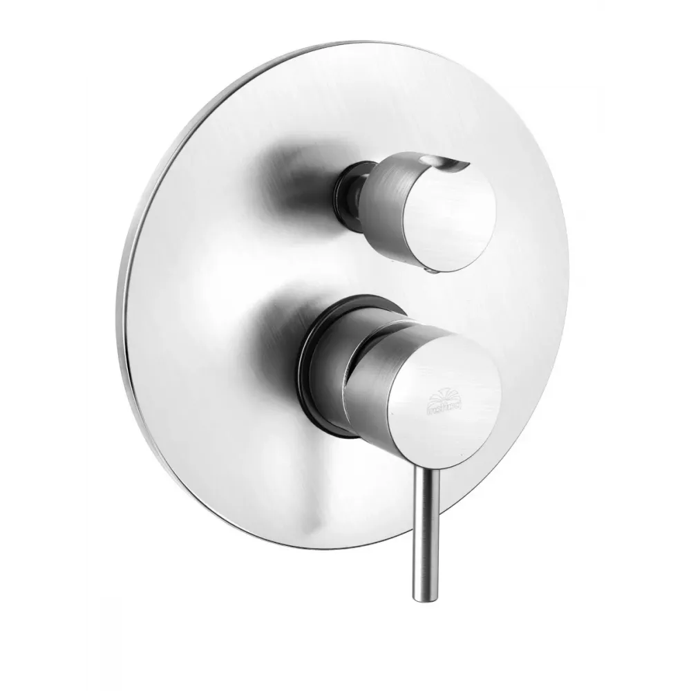 Смеситель для душа Paffoni Light LIG018ST встраиваемый на 2 выхода с накладкой из металла диаметр 200мм, девиатор-картридж, 2 положения+1 комбо, Steel looking