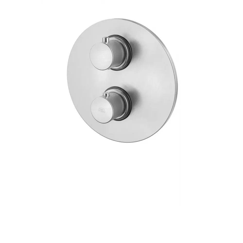 Смеситель для душа Paffoni Light LIQ018ST термостат встраиваемый на 2 выхода с накладкой из металла диаметр 200мм, девиатор-картридж, 2 положения+стоп, Steel looking