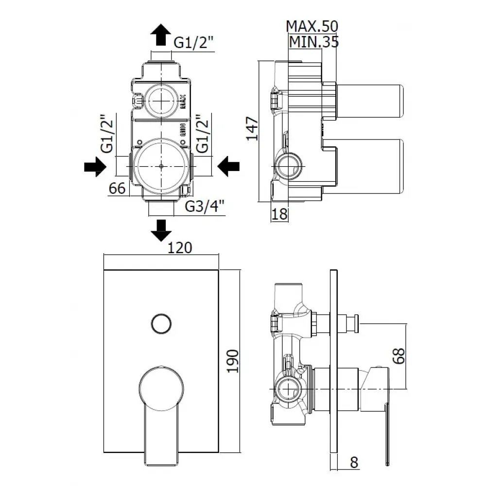 Смеситель для душа Paffoni Tango TA015CR/M встраиваемый на 2 выхода с накладкой из нержавеющей стали 120х190мм, девиатор-кнопка, хром