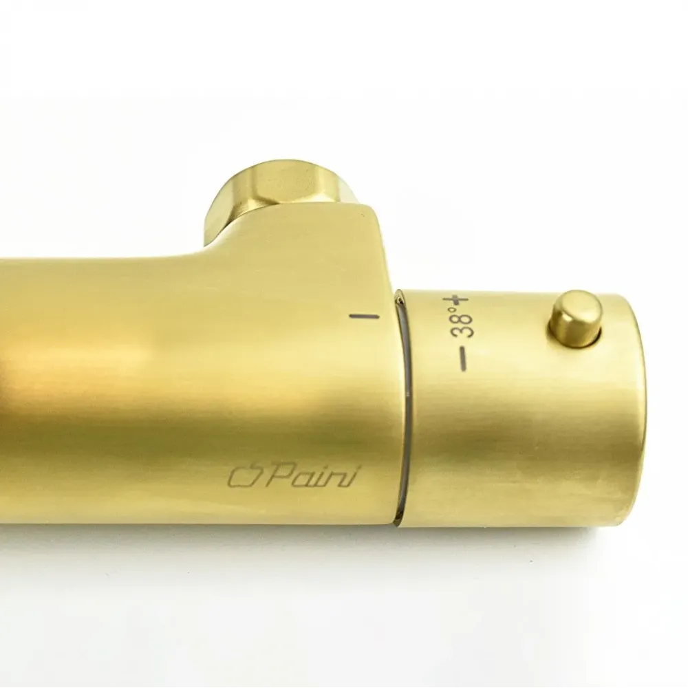 | Тип изделиядля душа, термостат | Тип управления клавишейтермостат | Цветбрашированное золото (PJ) |
