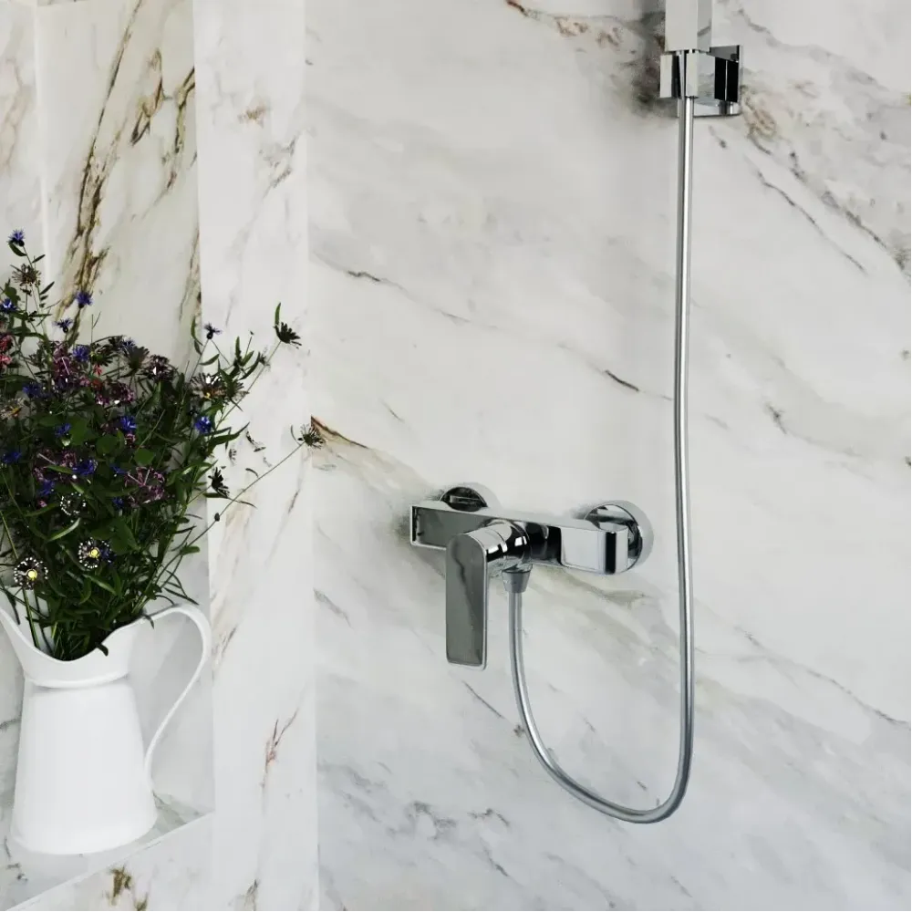 Акцентная геометрия и непревзойденное качество – все это сочетается в авторской коллекции итальянского дизайнера Mirko Bosio - NOVE. Однорычажный смеситель для душа выполнен в оригинальной форме, что можно отнести как к нестандартному конструктивному решению, так и к элементу шика. Широкая ручка рычага сочетается с квадратным корпусом.