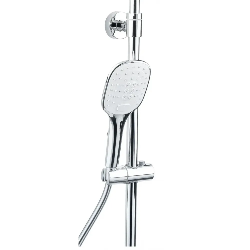 Душевая система Timo Beverly 1060 сочетает в себе функции тропического и ручного душа и прекрасно впишется в современный интерьер. Все элементы размещены снаружи, что позволяет устанавливать систему даже в готовом интерьере. Регулировка температуры и напора воды осуществляется джойстиком расположенном сверху на корпусе смесителя. Переключение потока воды на тропический душ и излив осуществляется поворотом ручки дивертора расположенном на корпусе смесителя. Для переключения потока воды с излива на ручной душ нужно повернуть излив к стене. Стойка тропического душа регулируется по высоте, держатель ручной лейки, также можно отрегулировать по высоте и наклону. Сложностей монтажа не возникает при установке душевой системы опытным сантехником. Внимательно изучите инструкцию по монтажу и эксплуатации.