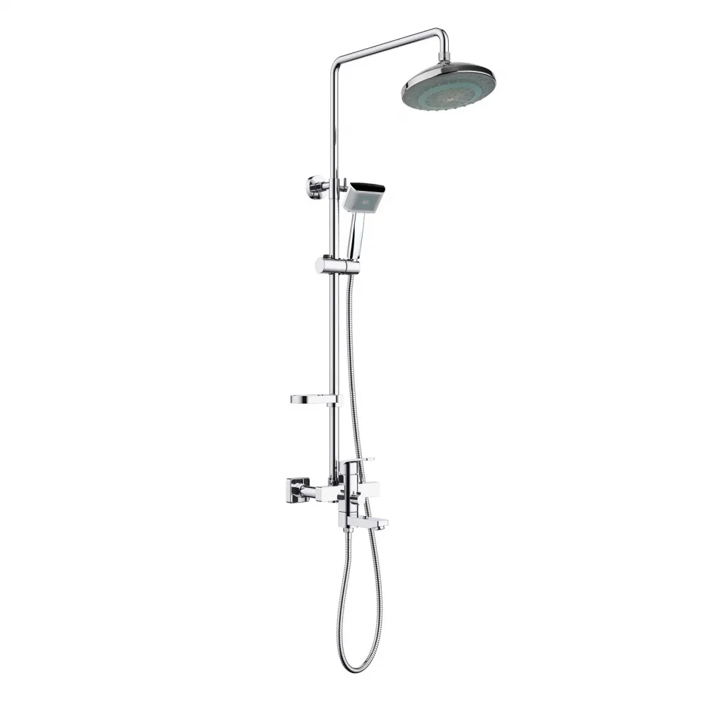 Душевая система Timo Beverly 1060 сочетает в себе функции тропического и ручного душа и прекрасно впишется в современный интерьер. Все элементы размещены снаружи, что позволяет устанавливать систему даже в готовом интерьере. Регулировка температуры и напора воды осуществляется джойстиком расположенном сверху на корпусе смесителя. Переключение потока воды на тропический душ и излив осуществляется поворотом ручки дивертора расположенном на корпусе смесителя. Для переключения потока воды с излива на ручной душ нужно повернуть излив к стене. Стойка тропического душа регулируется по высоте, держатель ручной лейки, также можно отрегулировать по высоте и наклону. Сложностей монтажа не возникает при установке душевой системы опытным сантехником. Внимательно изучите инструкцию по монтажу и эксплуатации.