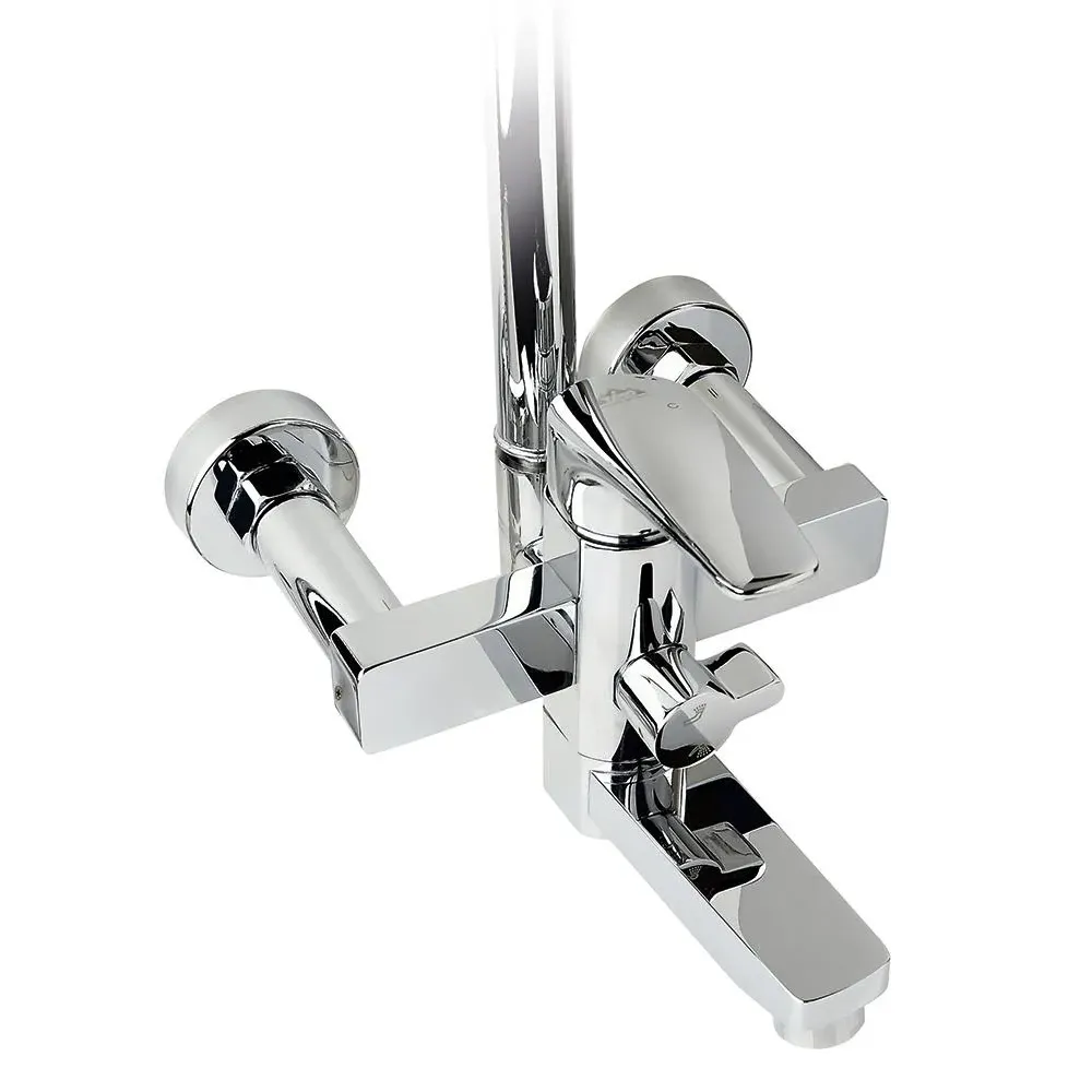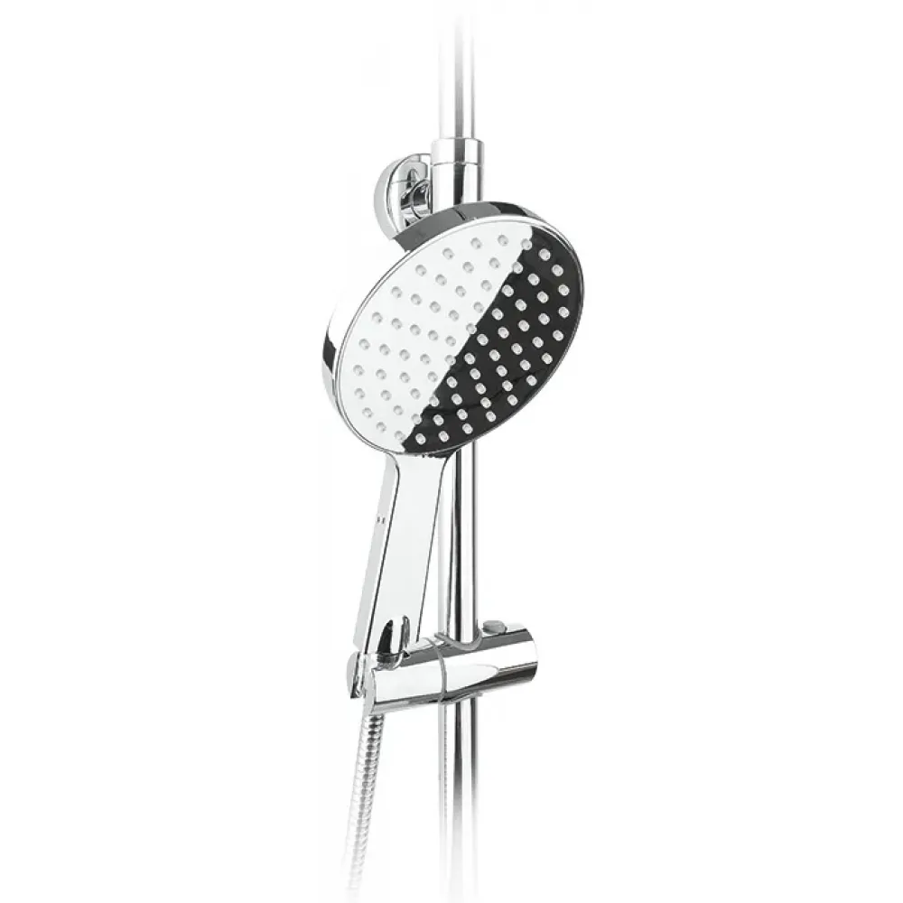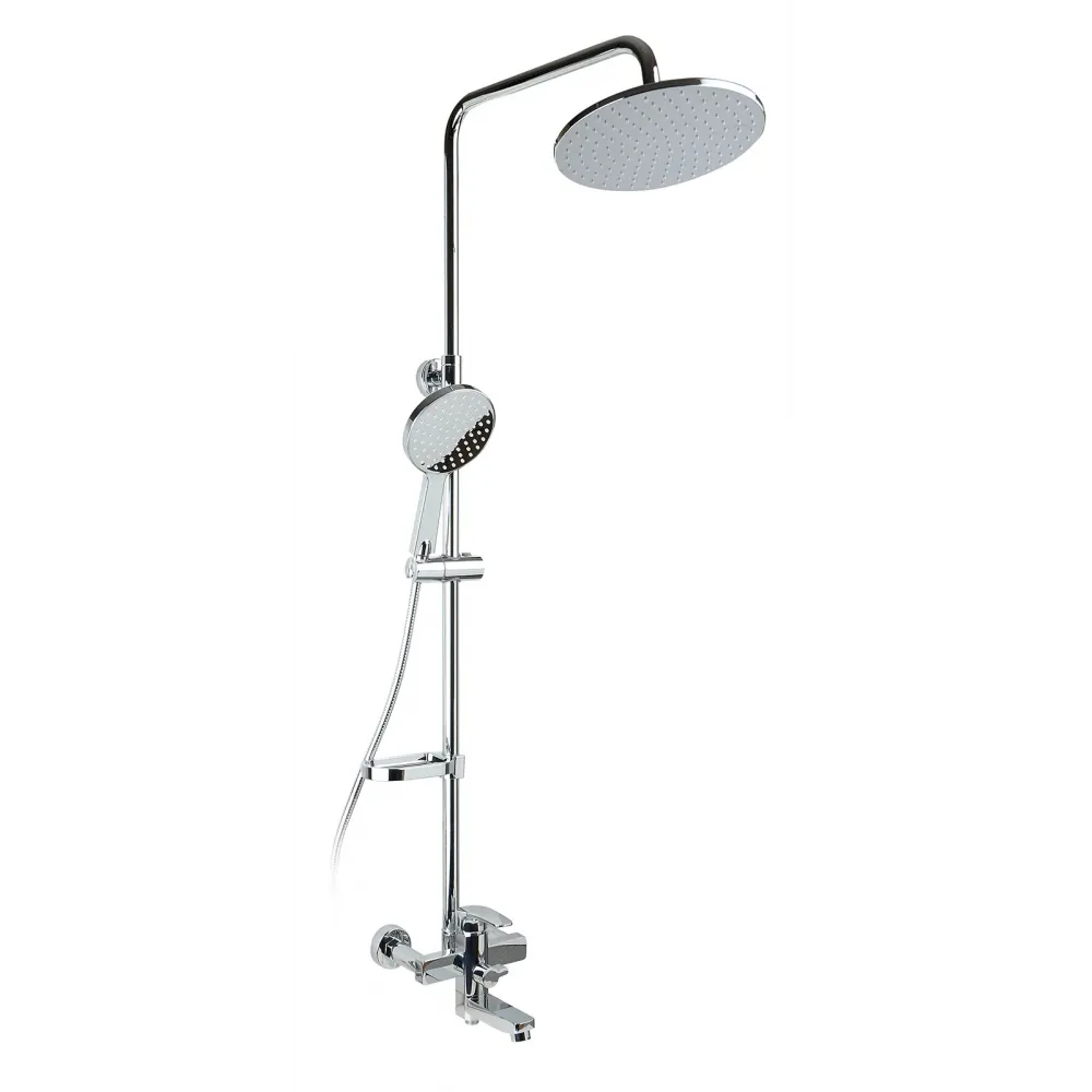 Душевая система Timo Beverly 1060 сочетает в себе функции тропического и ручного душа и прекрасно впишется в современный интерьер. Все элементы размещены снаружи, что позволяет устанавливать систему даже в готовом интерьере. Регулировка температуры и напора воды осуществляется джойстиком расположенном сверху на корпусе смесителя. Переключение потока воды на тропический душ и излив осуществляется поворотом ручки дивертора расположенном на корпусе смесителя. Для переключения потока воды с излива на ручной душ нужно повернуть излив к стене. Стойка тропического душа регулируется по высоте, держатель ручной лейки, также можно отрегулировать по высоте и наклону. Сложностей монтажа не возникает при установке душевой системы опытным сантехником. Внимательно изучите инструкцию по монтажу и эксплуатации.