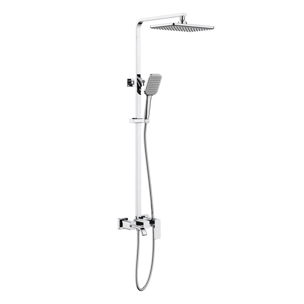 Душевая система Timo Selene 1013 сочетает в себе функции тропического и ручного душа и прекрасно впишется в современный интерьер. Все элементы размещены снаружи, что позволяет устанавливать систему даже в готовом интерьере. Регулировка температуры и напора воды осуществляется рычагом на корпусе смесителя справа. Переключение потока воды на тропический душ, ручную лейку и излив осуществляется поворотом ручки дивертора расположенном на корпусе смесителя. Стойка тропического душа регулируется по высоте, держатель ручной лейки, также можно отрегулировать по высоте и наклону. Сложностей монтажа не возникает при установке душевой системы опытным сантехником. Внимательно изучите инструкцию по монтажу и эксплуатации.