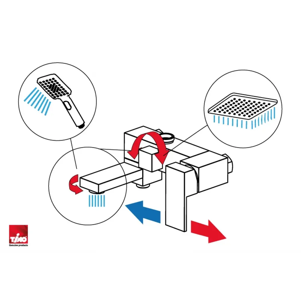 Душевая система Timo Selene 2013 сочетает в себе функции тропического и ручного душа и прекрасно впишется в современный интерьер. Все элементы размещены снаружи, что позволяет устанавливать систему даже в готовом интерьере. Регулировка температуры и напора воды осуществляется рычагом расположенном на корпусе смесителя справа. Переключение потока воды на тропический душ и излив осуществляется поворотом ручки дивертора расположенном на корпусе смесителя. Для переключения потока воды с излива на ручную лейку нужно повернуть излив к стене. Стойка тропического душа регулируется по высоте, держатель ручной лейки, также можно отрегулировать по высоте и наклону. Сложностей монтажа не возникает при установке душевой системы опытным сантехником. Внимательно изучите инструкцию по монтажу и эксплуатации.