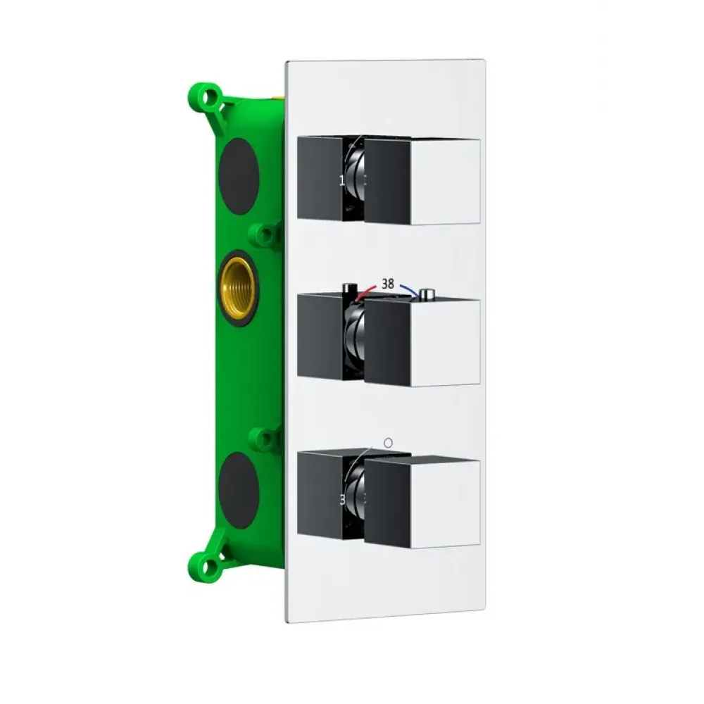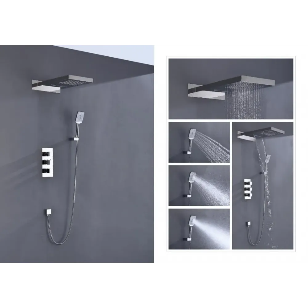 Душевая система с термостатом Timo Petruma 5039 относится к премиальному сегменту, предназначена для монтажа в полой или твердой стене. Термостатический картридж поддерживает стабильную температуру воды, обеспечивая максимально комфортные условия для принятия водных процедур. Настенный душ с двумя режимами позволяет принимать водные процедуры в зависимости от настроения. Регулируя напор воды можно получить массажное воздействие различной интенсивности. Используя режим "каскад"- получают седативное (успокаивающее) воздействие на затылочную часть головы или шейный отдел. Основные преимущества встроенной системы: элегантный внешний вид, все коммуникации и крепления спрятаны в стену, снаружи видны только декоративные элементы. Установить встроенную систему можно в любом месте. Использовать такой смеситель очень удобно, регулировка температуры воды осуществляется ручкой термостата (расположена по центру). Режим "тропический душ" и увеличение напора осуществляется поворотом ручки дивертора (расположена сверху) влево. Для переключения в режим "каскад" верните ручку дивертора в исходное положение 12:00 (смеситель выключен), а затем поверните вправо. Увеличение напора воды осуществляется поворотом ручки вправо. Для включения режима "ручной душ" поверните ручку дивертора (расположена снизу) с положения 12:00 (ручной душ выключен) влево. Увеличение напора воды осуществляется поворотом ручки влево. Смеситель может работать в двух режимах одновременно "каскад"+"ручной душ" или "тропический душ"+"ручной душ". Сложностей монтажа не возникает при установке элементов душевой системы опытным сантехником. Внимательно изучите инструкцию по монтажу и эксплуатации.