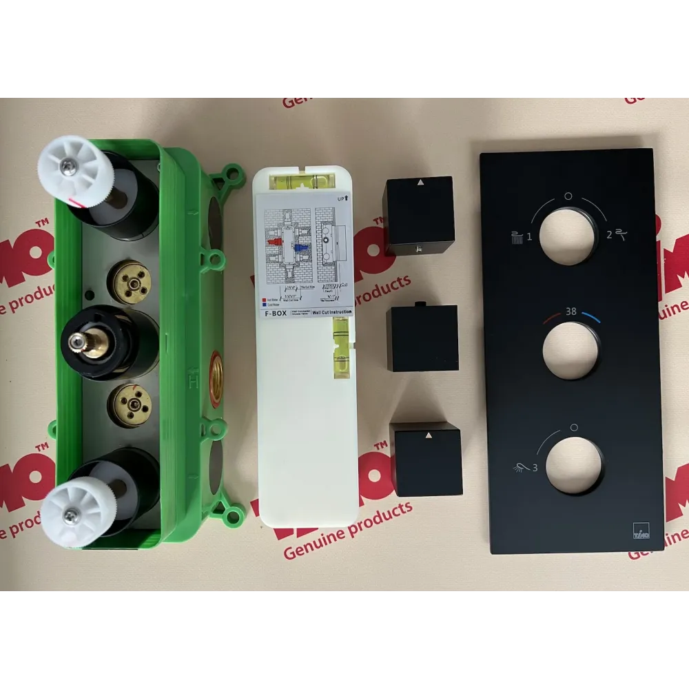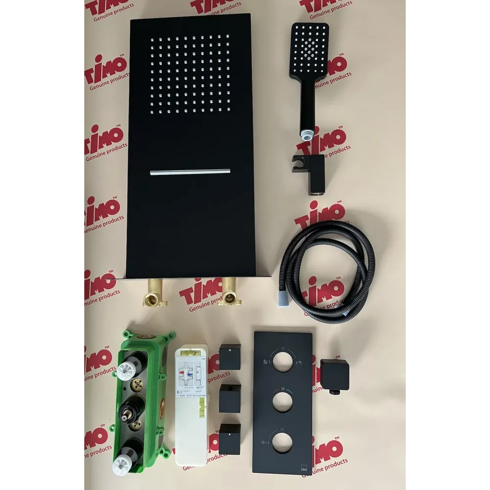 Душевая система с термостатом Timo Petruma 5039 относится к премиальному сегменту, предназначена для монтажа в полой или твердой стене. Термостатический картридж поддерживает стабильную температуру воды, обеспечивая максимально комфортные условия для принятия водных процедур. Настенный душ с двумя режимами позволяет принимать водные процедуры в зависимости от настроения. Регулируя напор воды можно получить массажное воздействие различной интенсивности. Используя режим "каскад"- получают седативное (успокаивающее) воздействие на затылочную часть головы или шейный отдел. Основные преимущества встроенной системы: элегантный внешний вид, все коммуникации и крепления спрятаны в стену, снаружи видны только декоративные элементы. Установить встроенную систему можно в любом месте. Использовать такой смеситель очень удобно, регулировка температуры воды осуществляется ручкой термостата (расположена по центру). Режим "тропический душ" и увеличение напора осуществляется поворотом ручки дивертора (расположена сверху) влево. Для переключения в режим "каскад" верните ручку дивертора в исходное положение 12:00 (смеситель выключен), а затем поверните вправо. Увеличение напора воды осуществляется поворотом ручки вправо. Для включения режима "ручной душ" поверните ручку дивертора (расположена снизу) с положения 12:00 (ручной душ выключен) влево. Увеличение напора воды осуществляется поворотом ручки влево. Смеситель может работать в двух режимах одновременно "каскад"+"ручной душ" или "тропический душ"+"ручной душ". Сложностей монтажа не возникает при установке элементов душевой системы опытным сантехником. Внимательно изучите инструкцию по монтажу и эксплуатации.