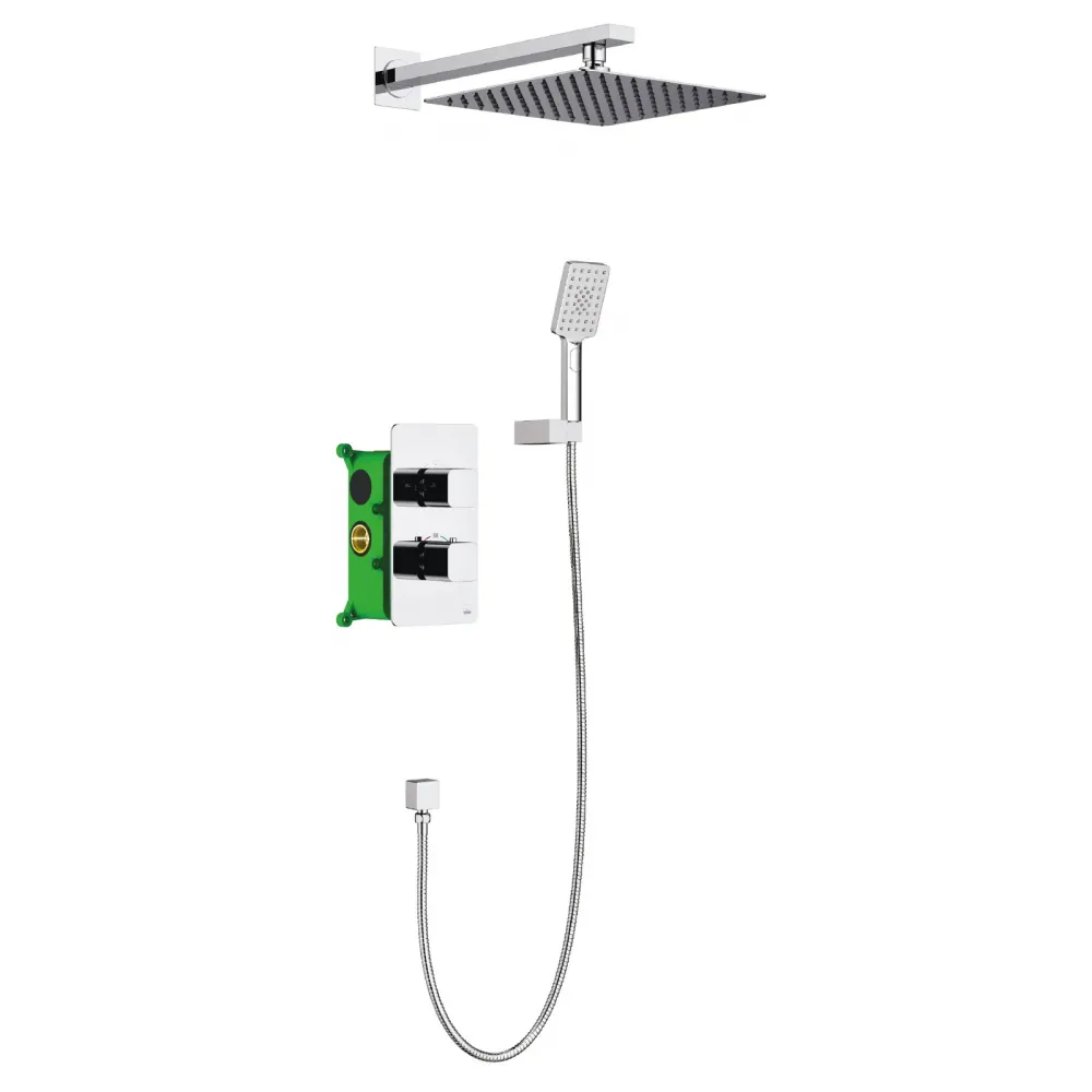 Душевая система с термостатом Timo Petruma 5059 относится к премиальному сегменту, предназначена для монтажа в полой или твердой стене. Термостатический картридж поддерживает стабильную температуру воды, обеспечивая максимально комфортные условия для принятия водных процедур. Основные преимущества встроенной системы: элегантный внешний вид, все коммуникации и крепления спрятаны в стену снаружи видны только декоративные элементы. Установить встроенную систему можно в любом месте. Использовать такой смеситель очень удобно, регулировка температуры воды осуществляется ручкой термостата (расположена снизу). Включение режима "тропический душ" и увеличение напора осуществляется поворотом ручки дивертора (расположена сверху) влево. Регулируя напор воды в режиме "тропический душ" можно получить массажное воздействие различной интенсивности. Для переключения в режим "ручной душ" верните ручку дивертора в исходное положение 12:00 (смеситель выключен), а затем поверните вправо. Увеличение напора воды осуществляется поворотом ручки вправо. Сложностей монтажа не возникает при установке элементов душевой системы опытным сантехником. Внимательно изучите инструкцию по монтажу и эксплуатации.