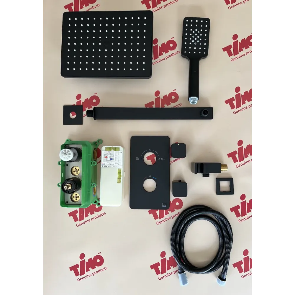 Душевая система с термостатом Timo Petruma 5059 относится к премиальному сегменту, предназначена для монтажа в полой или твердой стене. Термостатический картридж поддерживает стабильную температуру воды, обеспечивая максимально комфортные условия для принятия водных процедур. Основные преимущества встроенной системы: элегантный внешний вид, все коммуникации и крепления спрятаны в стену снаружи видны только декоративные элементы. Установить встроенную систему можно в любом месте. Использовать такой смеситель очень удобно, регулировка температуры воды осуществляется ручкой термостата (расположена снизу). Включение режима "тропический душ" и увеличение напора осуществляется поворотом ручки дивертора (расположена сверху) влево. Регулируя напор воды в режиме "тропический душ" можно получить массажное воздействие различной интенсивности. Для переключения в режим "ручной душ" верните ручку дивертора в исходное положение 12:00 (смеситель выключен), а затем поверните вправо. Увеличение напора воды осуществляется поворотом ручки вправо. Сложностей монтажа не возникает при установке элементов душевой системы опытным сантехником. Внимательно изучите инструкцию по монтажу и эксплуатации.