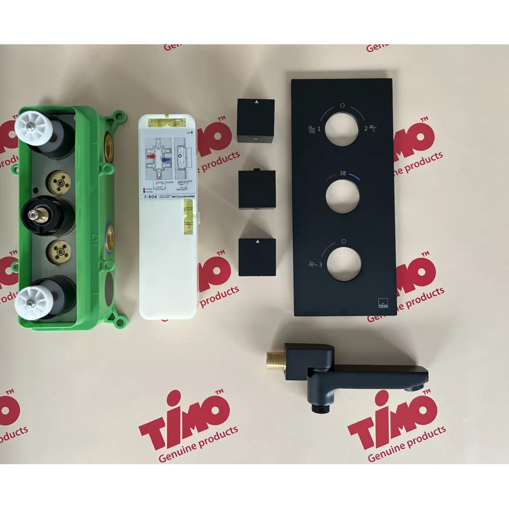 Душевая система с термостатом Timo Petruma 5079 относится к премиальному сегменту, предназначена для монтажа в полой или твердой стене. Термостатический картридж поддерживает стабильную температуру воды, обеспечивая максимально комфортные условия для принятия водных процедур. Настенный душ с двумя режимами позволяет принимать водные процедуры в зависимости от настроения. Регулируя напор воды можно получить массажное воздействие различной интенсивности. Используя режим "каскад"- получают седативное (успокаивающее) воздействие на затылочную часть головы или шейный отдел. Основные преимущества встроенной системы: элегантный внешний вид, все коммуникации и крепления спрятаны в стену, снаружи видны только декоративные элементы. Установить встроенную систему можно в любом месте. Использовать такой смеситель очень удобно, регулировка температуры воды осуществляется ручкой термостата (расположена по центру). Режим "тропический душ" и увеличение напора осуществляется поворотом ручки дивертора (расположена сверху) влево. Для переключения в режим "каскад" верните ручку дивертора в исходное положение 12:00 (смеситель выключен), а затем поверните вправо. Увеличение напора воды осуществляется поворотом ручки вправо. Для включения режима "излив" поверните ручку дивертора (расположена снизу) с положения 12:00 (излив выключен) влево. Увеличение напора воды осуществляется поворотом ручки влево. Смеситель может работать в нескольких режимах одновременно "каскад"+"ручной душ", "тропический душ"+"ручной душ", "каскад"+"излив", "тропический душ"+"излив". Сложностей монтажа не возникает при установке элементов душевой системы опытным сантехником. Внимательно изучите инструкцию по монтажу и эксплуатации.