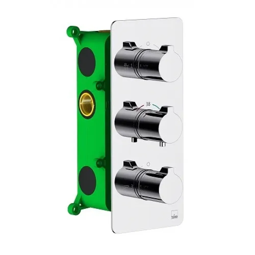 Душевая система с термостатом Timo Petruma 5149 относится к премиальному сегменту, предназначена для монтажа в полой или твердой стене. Термостатический картридж поддерживает стабильную температуру воды, обеспечивая максимально комфортные условия для принятия водных процедур. Основные преимущества встроенной системы: элегантный внешний вид, все коммуникации и крепления спрятаны в стену снаружи видны только декоративные элементы. Установить встроенную систему можно в любом месте. Использовать такой смеситель очень удобно, регулировка температуры воды осуществляется ручкой термостата (расположена по центру). Включение режима "тропический душ" и увеличение напора осуществляется поворотом ручки дивертора (расположена сверху) влево. Регулируя напор воды в режиме "тропический душ" можно получить массажное воздействие различной интенсивности. Для переключения в режим "ручной душ" верните ручку дивертора в исходное положение 12:00 (смеситель выключен), а затем поверните вправо. Увеличение напора воды осуществляется поворотом ручки вправо. Для включения режима "излив" поверните ручку дивертора (расположена снизу) с положения 12:00 (излив выключен) влево. Увеличение напора воды осуществляется поворотом ручки влево. Смеситель может работать в двух режимах одновременно "тропический душ"+"излив" или "тропический душ"+"ручной душ". Сложностей монтажа не возникает при установке элементов душевой системы опытным сантехником. Внимательно изучите инструкцию по монтажу и эксплуатации.