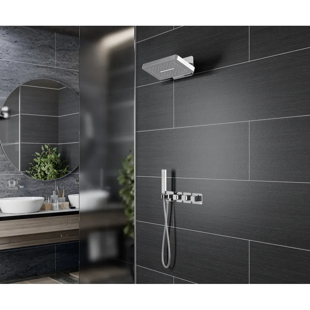 Душевая система с термостатом Timo Petruma 5249 относится к премиальному сегменту, предназначена для монтажа в полой или твердой стене. Термостатический картридж поддерживает стабильную температуру воды, обеспечивая максимально комфортные условия для принятия водных процедур. Настенный душ с двумя режимами позволяет принимать водные процедуры в зависимости от настроения. Регулируя напор воды можно получить массажное воздействие различной интенсивности. Используя режим "каскад"- получают седативное (успокаивающее) воздействие на затылочную часть головы или шейный отдел. Основные преимущества встроенной системы: элегантный внешний вид, все коммуникации и крепления спрятаны в стену, снаружи видны только декоративные элементы. Установить встроенную систему можно в любом месте. Использовать такой смеситель очень удобно, регулировка температуры воды осуществляется ручкой термостата (расположена справа). Переключение режимов "каскад", "тропический душ", "ручной душ" и увеличение напора осуществляется поворотом ручек диверторов расположенных слева от термостата. В положении ручек диверторов в положение 12:00 (смеситель выключен). Смеситель может работать в нескольких режимах одновременно"каскад"+"ручной душ", "тропический душ"+"ручной душ". Сложностей монтажа не возникает при установке элементов душевой системы опытным сантехником. Внимательно изучите инструкцию по монтажу и эксплуатации.