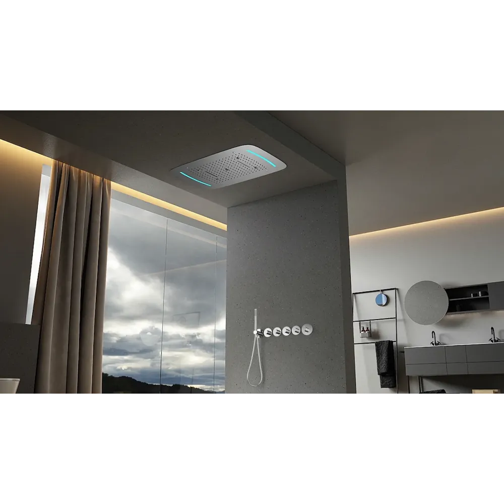 Встраиваемая душевая система с термостатом Timo Saona 2319 относится к премиальному сегменту, предназначена для монтажа в полой или твердой стене. Термостатический картридж поддерживает стабильную температуру воды, обеспечивая максимально комфортные условия для принятия водных процедур. Встроенный потолочный душ большого размера создает имитацию проливного дождя, вода обливает человека целиком. Регулируя напор воды можно получить массажное воздействие, что очень полезно для здоровья. Основные преимущества встроенной системы: элегантный внешний вид, все коммуникации и крепления спрятаны в стену и потолок, снаружи видны только декоративные элементы. Установить встроенную систему можно в любом месте. Сложностей монтажа не возникает при установке элементов душевой системы опытным сантехником. Внимательно изучите инструкцию по монтажу и эксплуатации.