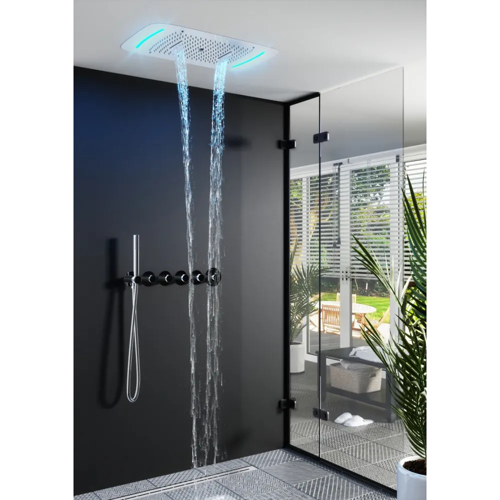 Встраиваемая душевая система с термостатом Timo Saona 2319 относится к премиальному сегменту, предназначена для монтажа в полой или твердой стене. Термостатический картридж поддерживает стабильную температуру воды, обеспечивая максимально комфортные условия для принятия водных процедур. Встроенный потолочный душ большого размера создает имитацию проливного дождя, вода обливает человека целиком. Регулируя напор воды можно получить массажное воздействие, что очень полезно для здоровья. Основные преимущества встроенной системы: элегантный внешний вид, все коммуникации и крепления спрятаны в стену и потолок, снаружи видны только декоративные элементы. Установить встроенную систему можно в любом месте. Сложностей монтажа не возникает при установке элементов душевой системы опытным сантехником. Внимательно изучите инструкцию по монтажу и эксплуатации.