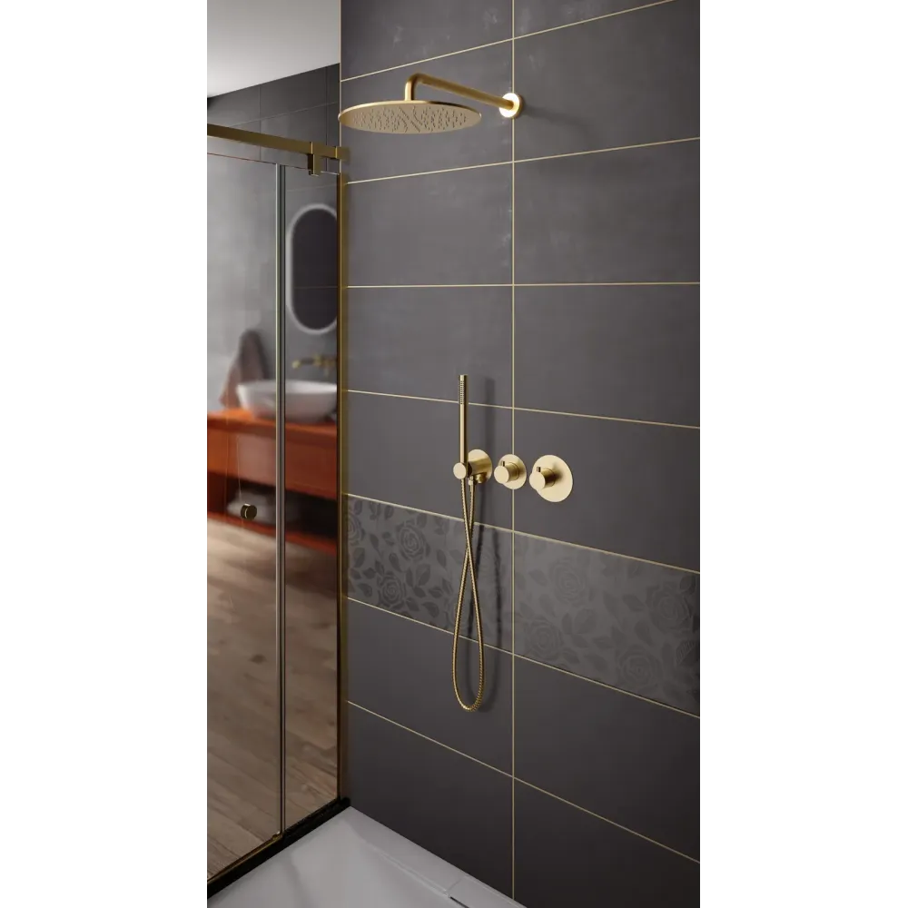 Встраиваемая душевая система с термостатом Timo Saona 2359 относится к премиальному сегменту, предназначена для монтажа в полой или твердой стене. Термостатический картридж поддерживает стабильную температуру воды, обеспечивая максимально комфортные условия для принятия водных процедур. Верхний душ создает имитацию проливного дождя, вода обливает человека целиком. Регулируя напор воды можно получить массажное воздействие, что очень полезно для здоровья. Основные преимущества встроенной системы: элегантный внешний вид, все коммуникации и крепления спрятаны в стену и потолок, снаружи видны только декоративные элементы. Установить встроенную систему можно в любом месте. Сложностей монтажа не возникает при установке элементов душевой системы опытным сантехником. Внимательно изучите инструкцию по монтажу и эксплуатации.