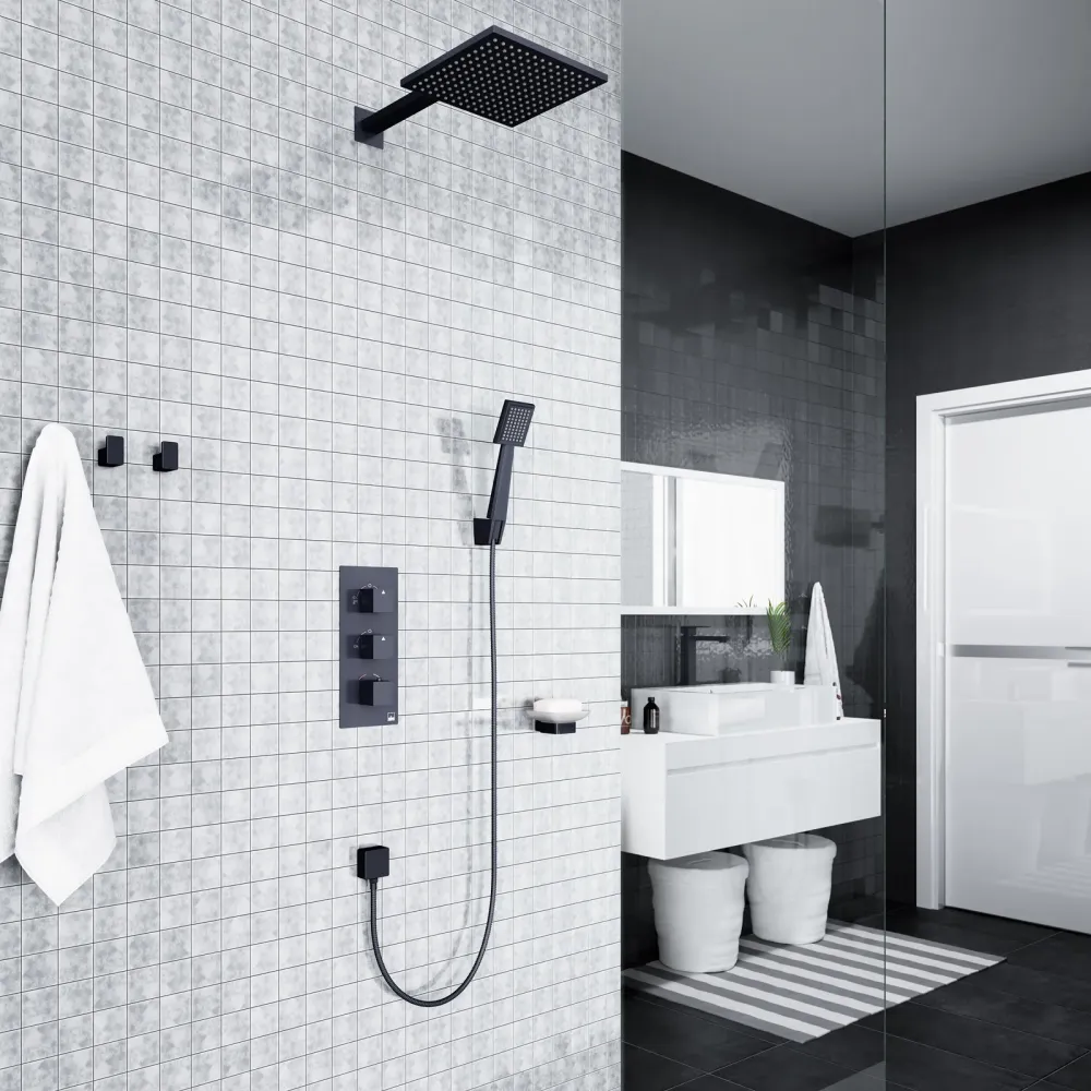 Душевая система с термостатом Tetra-thermo 0179, относится к премиальному сегменту, предназначена для монтажа в полой или твердой стене. Термостатический картридж поддерживает стабильную температуру воды, обеспечивая максимально комфортные условия для принятия водных процедур. Регулируя напор воды в режиме "тропический душ" можно получить массажное воздействие различной интенсивности. Основные преимущества встроенной системы: элегантный внешний вид, все коммуникации и крепления спрятаны в стену снаружи видны только декоративные элементы. Установить встроенную систему можно в любом месте. Использовать такой смеситель очень удобно, регулировка температуры воды осуществляется ручкой термостата (расположена снизу). Включение режима "тропический душ" осуществляется поворотом ручки дивертора (расположена сверху) вправо. Для переключения в режим "ручной душ" верните ручку дивертора в исходное положение 12:00, затем поверните влево. В исходном положении 12:00 режим "тропический душ" и "ручной душ" выключен. Увеличение напора воды осуществляется поворотом ручки (расположена по центру) влево. В исходном положении 12:00 смеситель выключен. Сложностей монтажа не возникает при установке элементов душевой системы опытным сантехником. Внимательно изучите инструкцию по монтажу и эксплуатации.