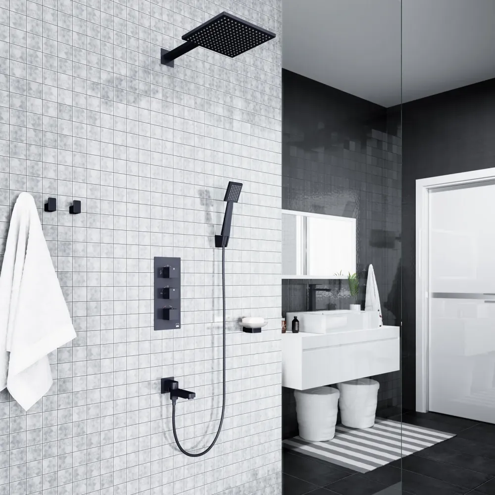 Душевая система с термостатом Tetra-thermo 0199, относится к премиальному сегменту, предназначена для монтажа в полой или твердой стене. Термостатический картридж поддерживает стабильную температуру воды, обеспечивая максимально комфортные условия для принятия водных процедур. Регулируя напор воды в режиме "тропический душ" можно получить массажное воздействие различной интенсивности. В комплектацию душевой системы входит излив, с его помощью можно наполнить ванну, ведро воды и т.д. Основные преимущества встроенной системы: элегантный внешний вид, все коммуникации и крепления спрятаны в стену снаружи видны только декоративные элементы. Установить встроенную систему можно в любом месте. Использовать такой смеситель очень удобно, регулировка температуры воды осуществляется ручкой термостата (расположена снизу). Включение режима "тропический душ" осуществляется поворотом ручки дивертора (расположена сверху) вправо. Для переключения в режим "излив" верните ручку дивертора в исходное положение 12:00, затем поверните влево. В исходном положении 12:00 режим "тропический душ" и "излив" выключен. Для пеключения потока воды с излива на ручную лейку, поверните излив к стене. Увеличение напора воды осуществляется поворотом ручки (расположена по центру) влево. В исходном положении 12:00 смеситель выключен. Сложностей монтажа не возникает при установке элементов душевой системы опытным сантехником. Внимательно изучите инструкцию по монтажу и эксплуатации.