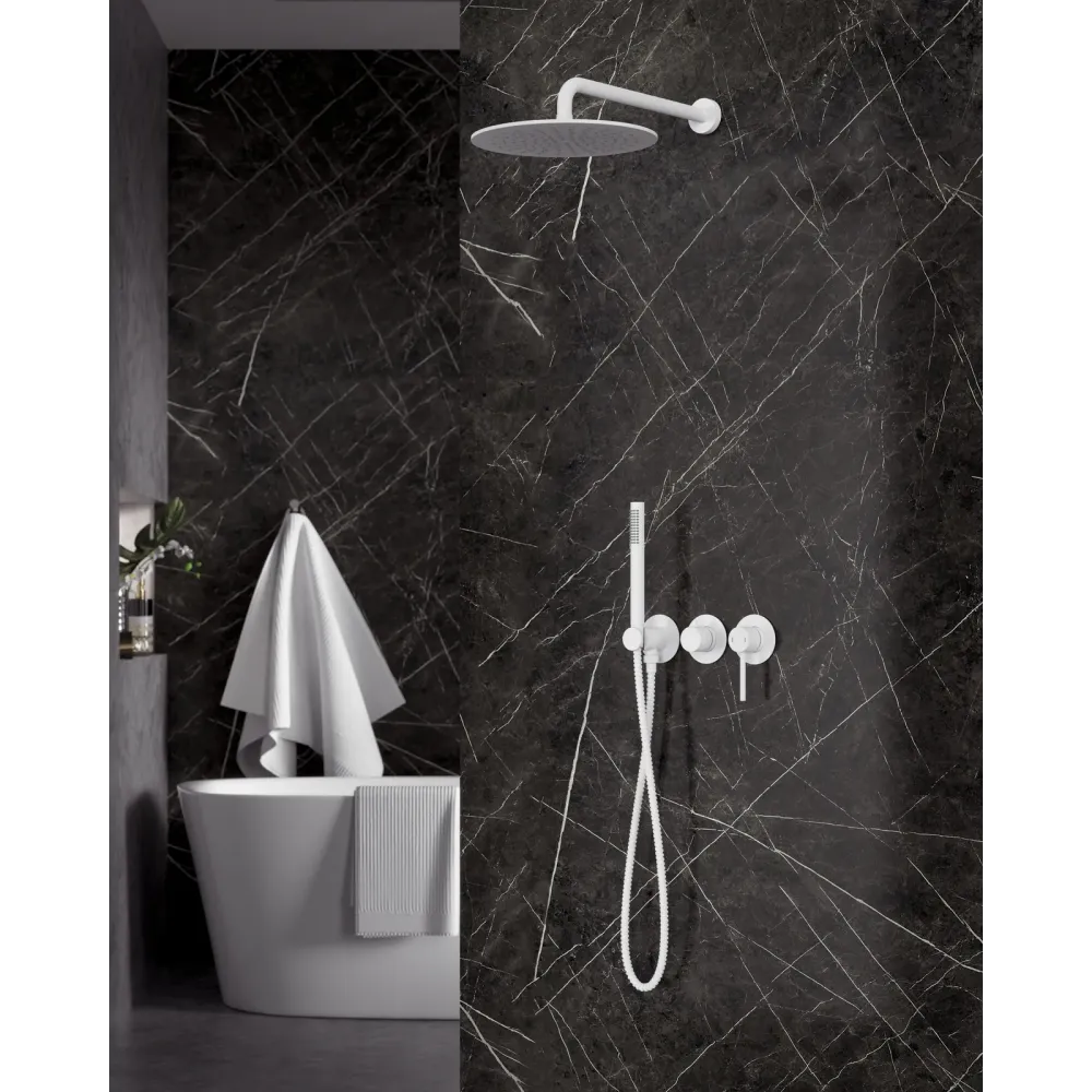 Встраиваемая душевая система Saona 2349, предназначена для монтажа в полой или твердой стене. Основные преимущества встроенной системы: коммуникации, крепления и механизмы спрятаны в стену и видны только декоративные элементы. Установить встроенную систему можно в любом месте. Использовать такой смеситель очень удобно, регулировка температуры и напора воды осуществляется одним рычагом. Регулируя напор воды в режиме "тропический душ", можно получить массажное воздействие различной интенсивности. Переключение режимов подачи воды (тропический душ, ручная лейка) осуществляется поворотом керамического дивертора. Сложностей монтажа не возникает при установке элементов душевой системы опытным сантехником. Внимательно изучите инструкцию по монтажу.