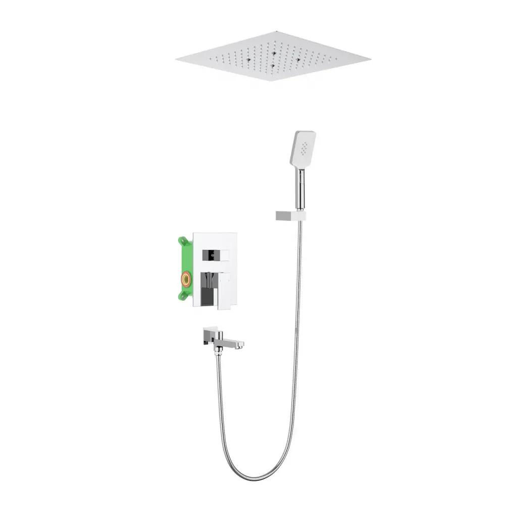 Встраиваемая душевая система Selene 2039, относится к премиальному сегменту, предназначена для монтажа в полой или твердой стене. Встроенный потолочный душ большого размера создает имитацию проливного дождя, вода обливает человека целиком. Регулируя напор воды можно получить массажное воздействие, что очень полезно для здоровья. Основные преимущества встроенной системы: элегантный внешний вид, все коммуникации и крепления спрятаны в стену и потолок, снаружи видны только декоративные элементы. Установить встроенную систему можно в любом месте. Использовать такой смеситель очень удобно, регулировка напора и температуры воды осуществляется одним рычагом. Переключение режимов "тропический душ" и "излив" осуществляется поворотом ручки дивертора. Для переключения потока воды с излива на ручную лейку нужно повернуть излив к стене. Сложностей монтажа не возникает при установке элементов душевой системы опытным сантехником. Внимательно изучите инструкцию по монтажу и эксплуатации.