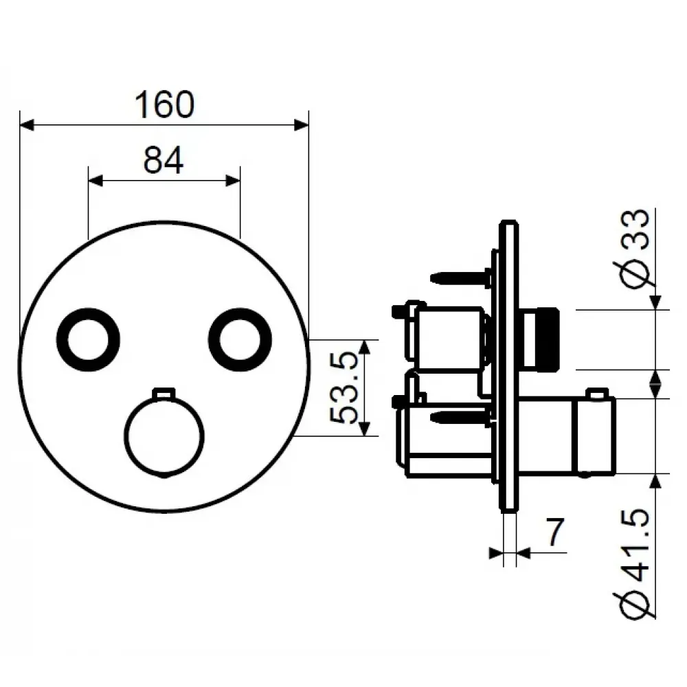 PSB1902NO Внешняя часть встраиваемого смесителя для душа на 2 выхода, для комбинирования с PSB003 накладка нерж.сталь d.160мм, черный матовый PSBOX, Plumberia Selection