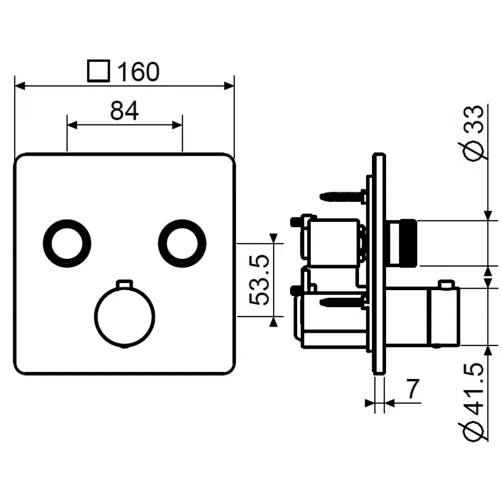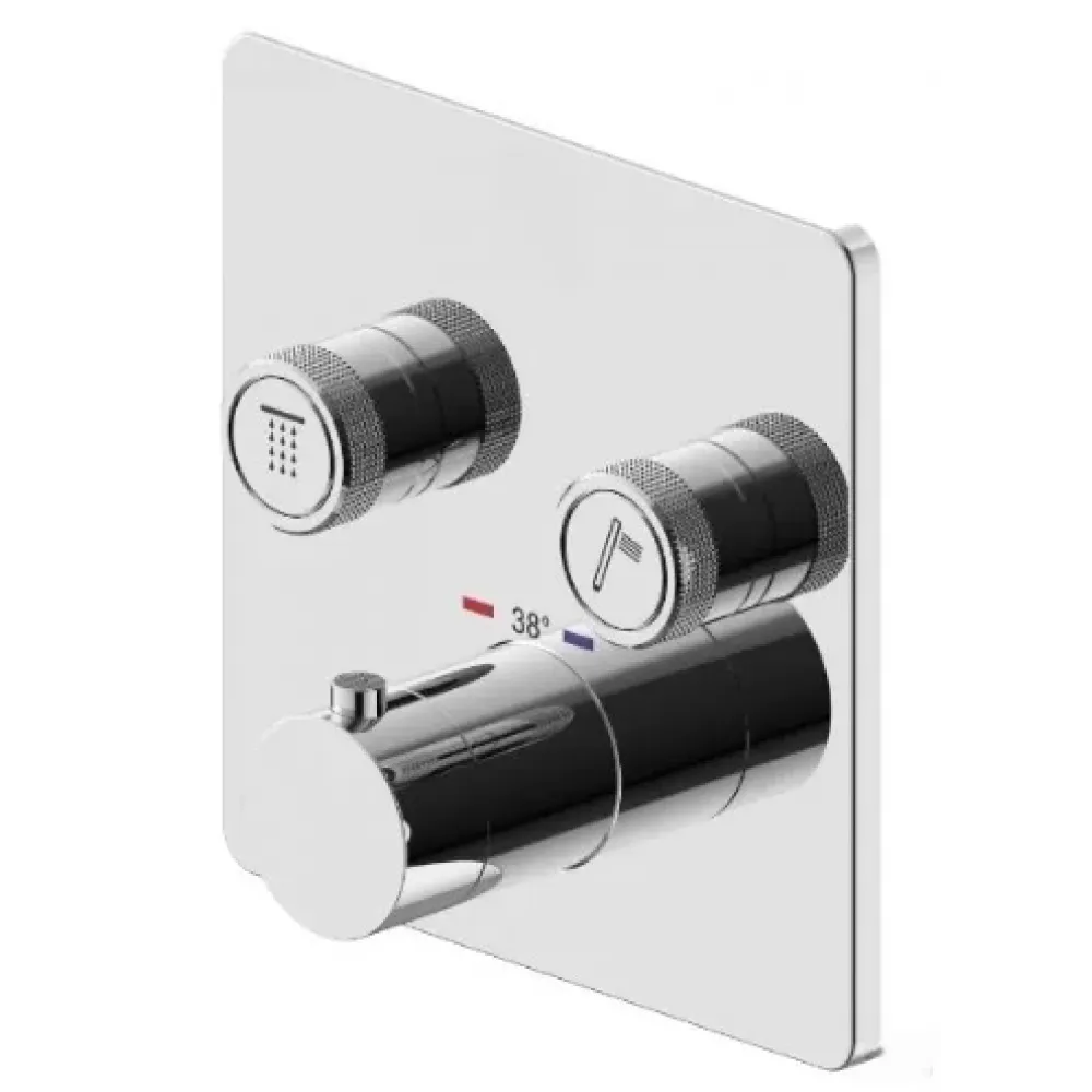 PSB2902CR Внешняя часть встраиваемого смесителя для душа на 2 выхода, для комбинирования с PSB003 накладка нерж.сталь 160х160мм, хром PSBOX, Plumberia Selection