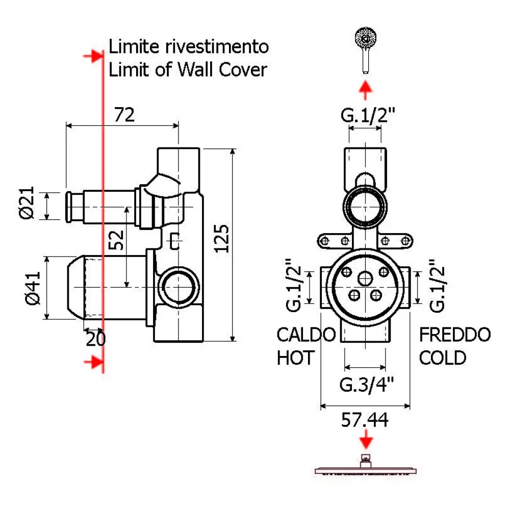 Внутренняя часть смесителя для душа Plumberia Selection INT0036CR