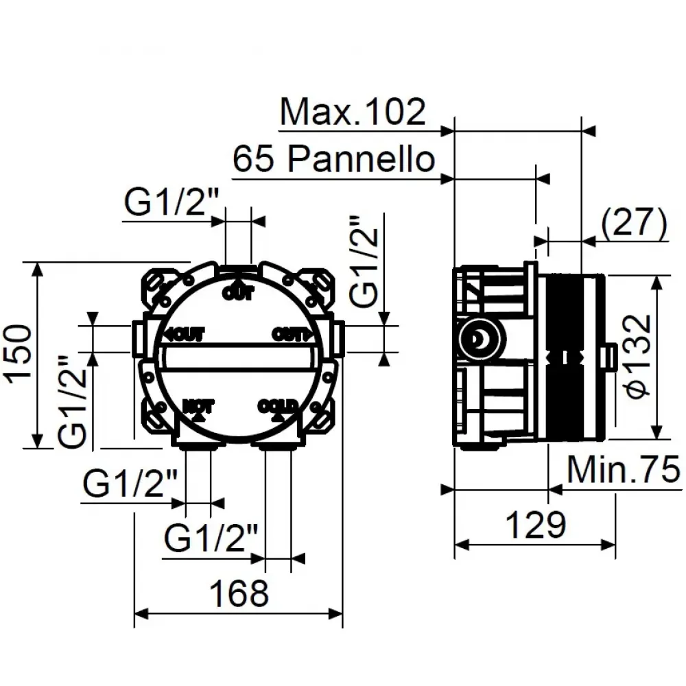 PSB003 Внутренняя часть-PS Box встраиваемого термостатического смесителя для душа на 2-3 выхода, PSBOX, Plumberia Selection