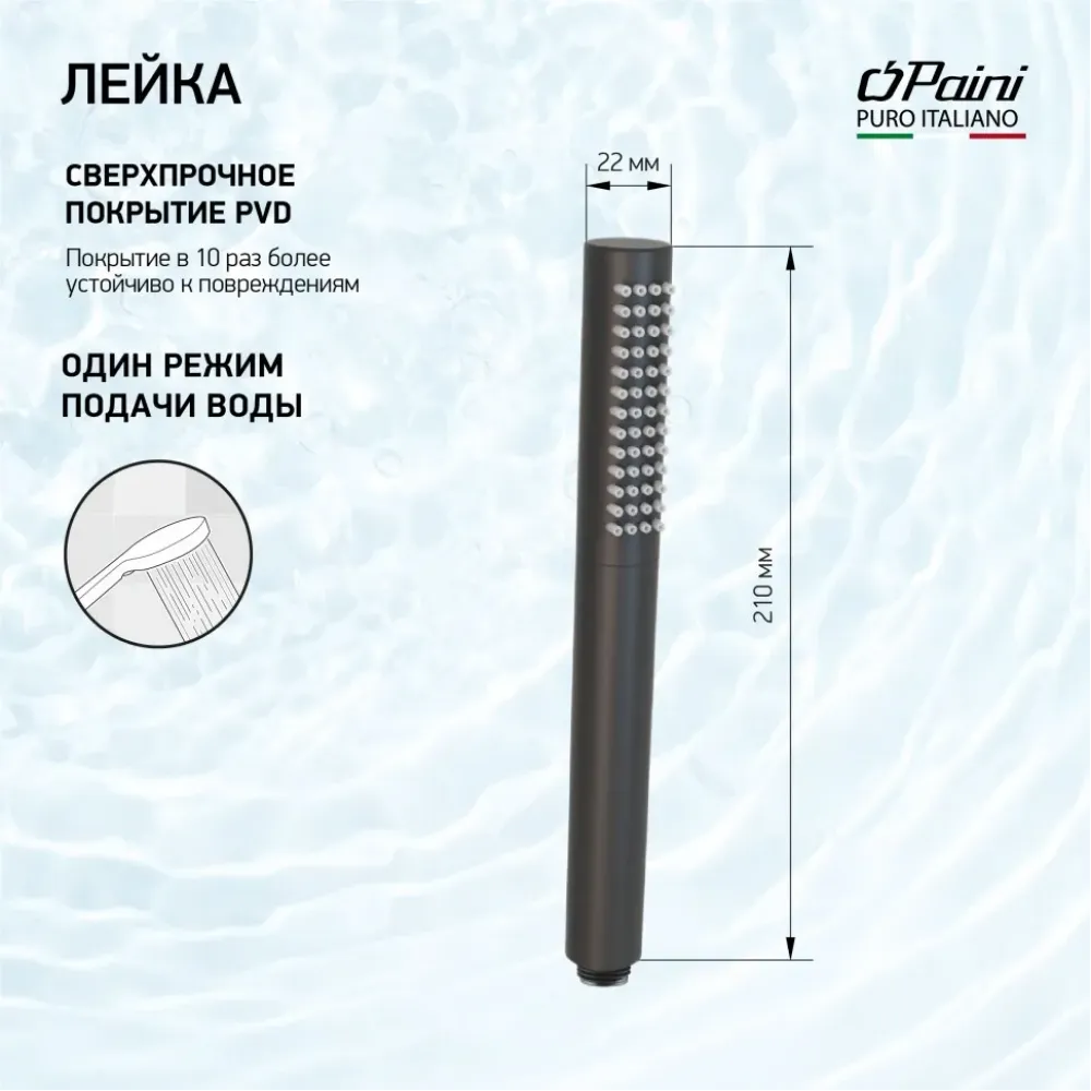 Душевая лейка ручная PAINI круглая, латунь, брашированный чёрный PVD 53PZ155TT 6 710 руб.