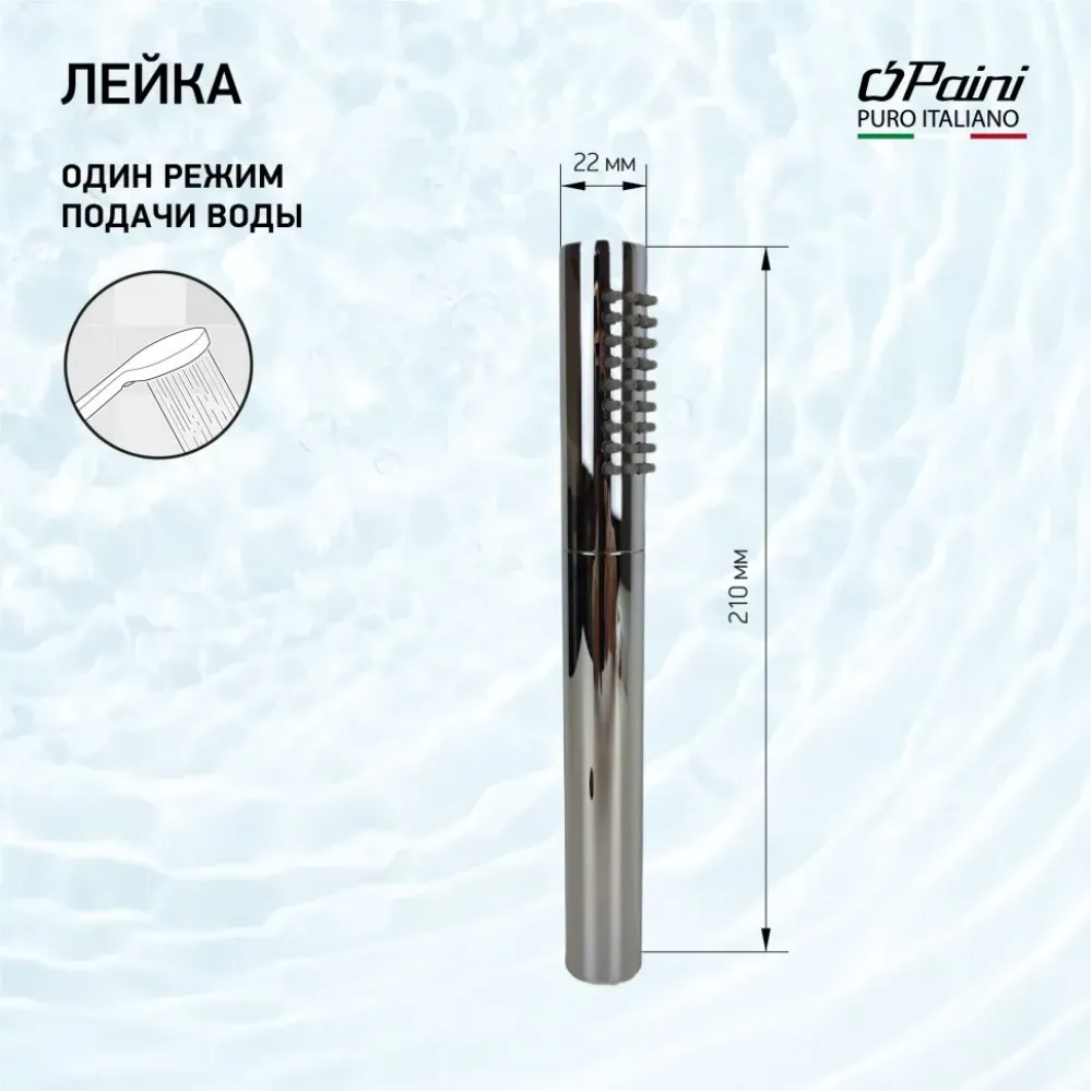 Технические характеристики Душевая лейка ручная PAINI Tonda, 22х210 мм, латунь, 1 режим, хром (CR)