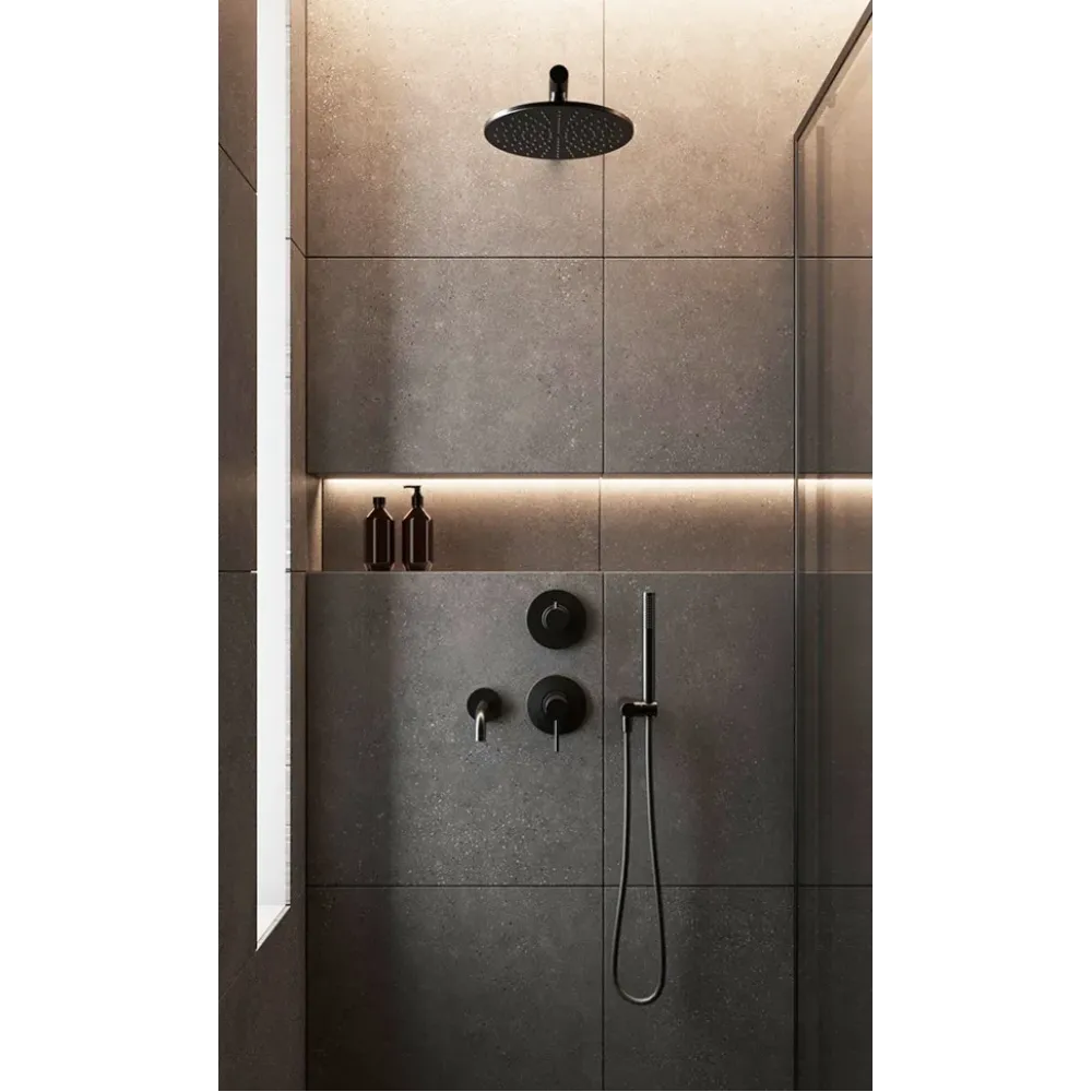 Дивертор фабрики "ПАИНИ" коллекции Cox позволяет распределить поток воды на три выхода и подключить несколько устройств, например, верхний душ, излив и ручную лейку, или включить одновременно любые два из них.