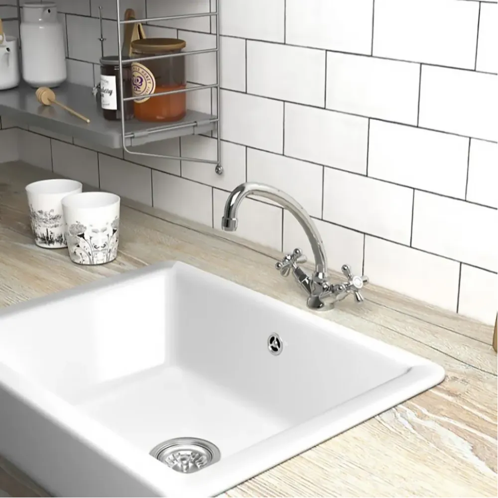 - Благодаря высокому корпусу и поворотному изливу идеально подходит для кухни.