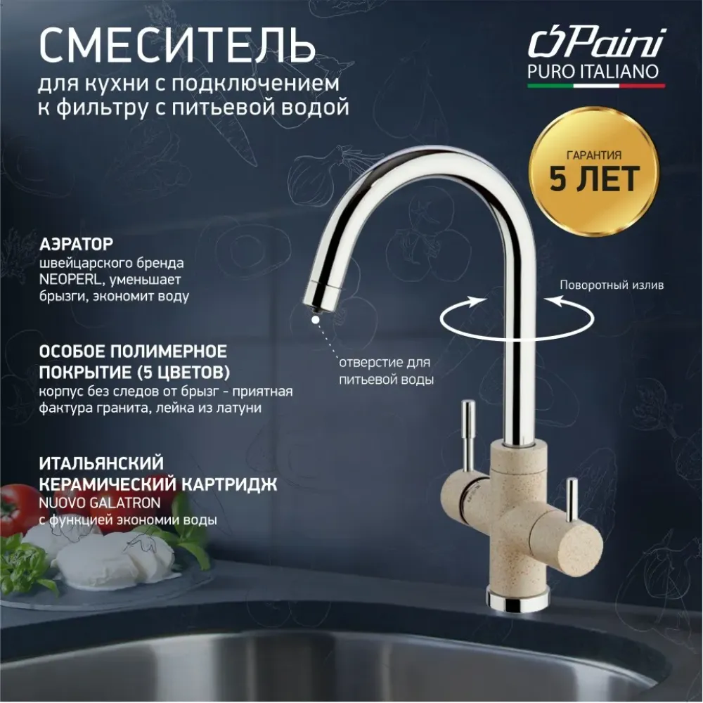 Смеситель для кухни на 3 воды, PAINI Cox, GRANITE AVENA 0 22440р.