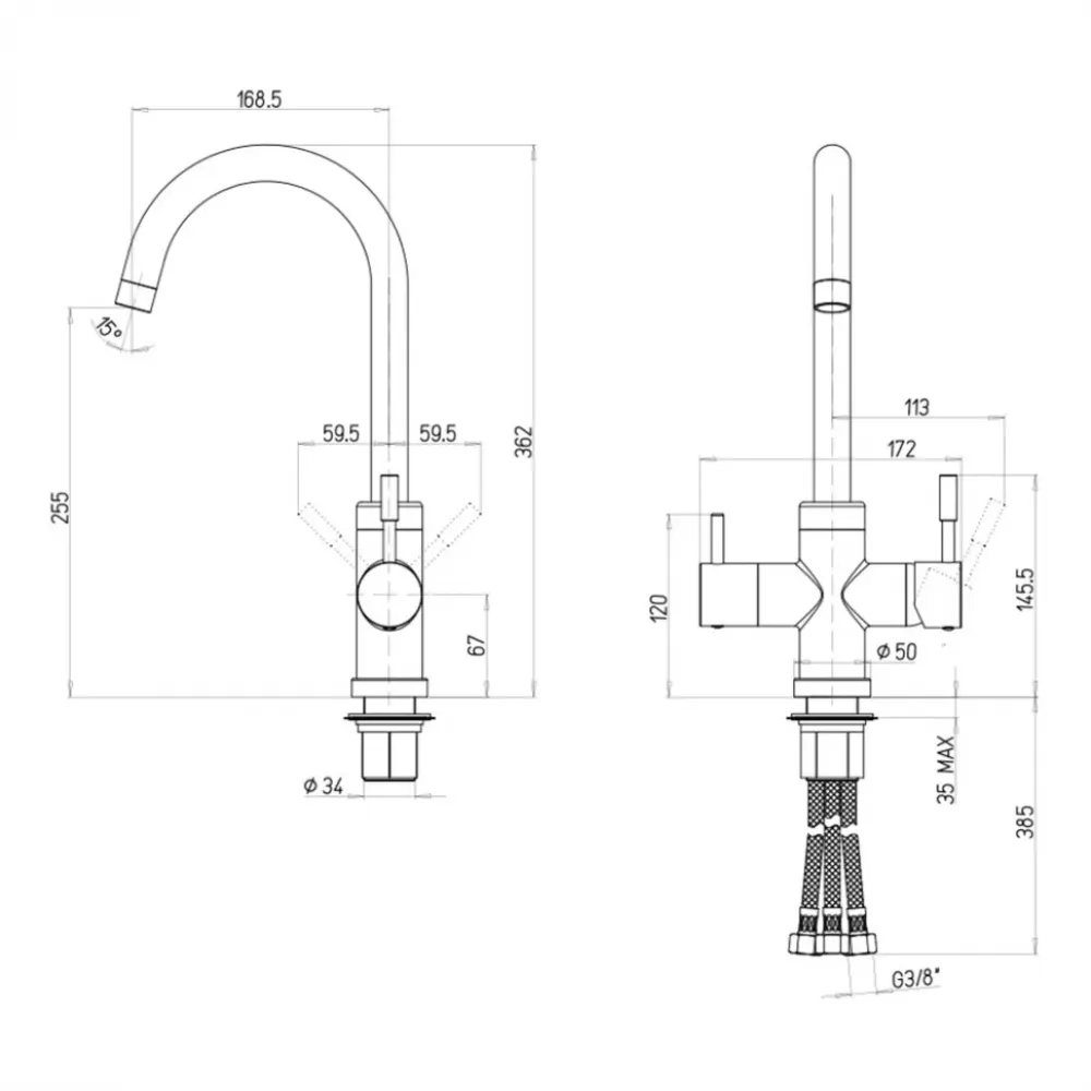 Технические характеристики Смеситель для кухни на 3 воды, PAINI Cox, GRANITE AVENA