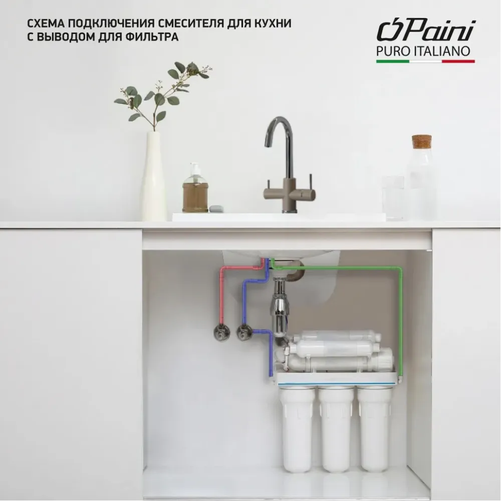 Оптимизируем мокрую зону на кухне со смесителем PAINI COX на 3 воды! Однорычажный смеситель классической формы, но с одной важной деталью: фильтр для воды подключается прямо к смесителю. Легкий монтаж без дополнительных отверстий в столешнице, теперь для доступа к питьевой воде нужно просто повернуть рычаг на корпусе смесителя. Смеситель представлен в необычных цветах, что дает простор творчеству и позволяет сочетать его с мойками и кухонной мебелью разных фактур и материалов.