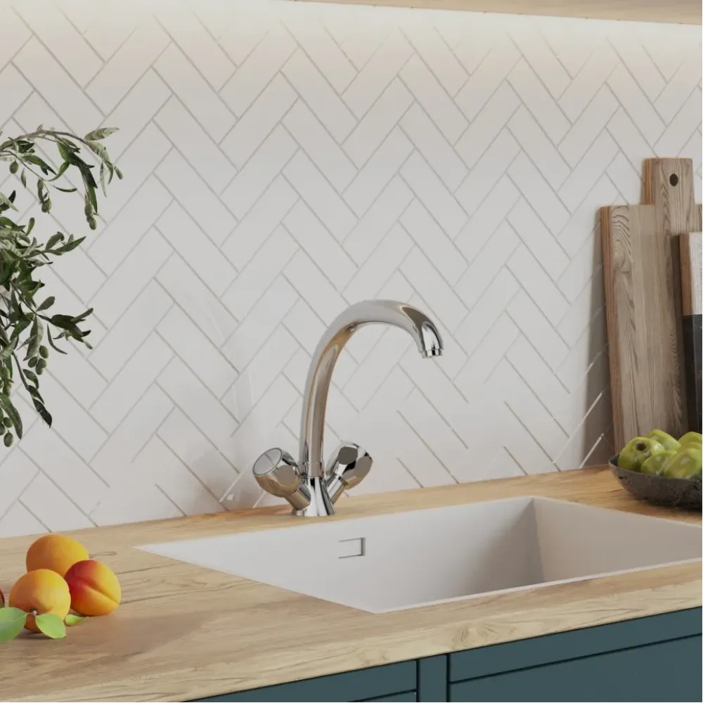 Универсальная классика от PAINI теперь доступна и в бюджетной ценовой категории. Традиционное качество итальянского бренда, функциональность и форма двухвентильного смесителя для кухни подойдут для любого стиля квартиры или загородного дома. Поворотный излив позволяет менять направление струи, а хромовое покрытие не требует специального ухода и прослужит долго.