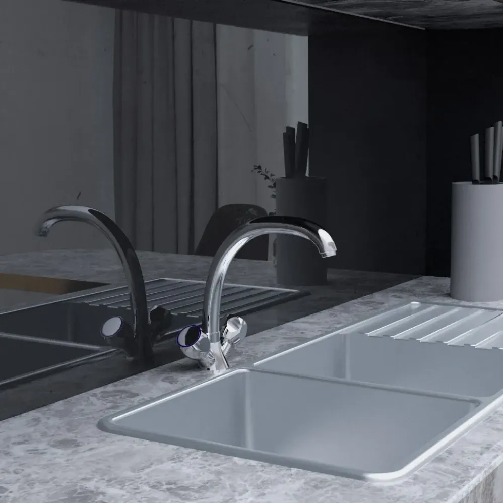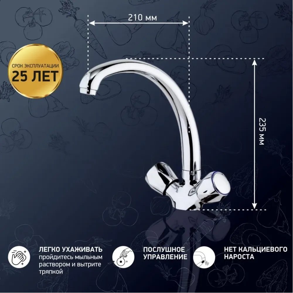 - Поворотный излив для комфортного использования на кухне.