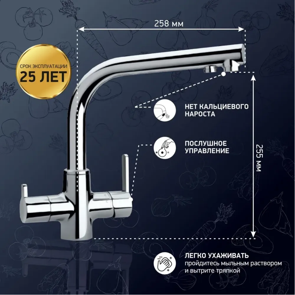 - Помимо стандартного рычага для управления температурой воды и открытия / закрытия, имеется рычаг для подачи фильтрованной воды.