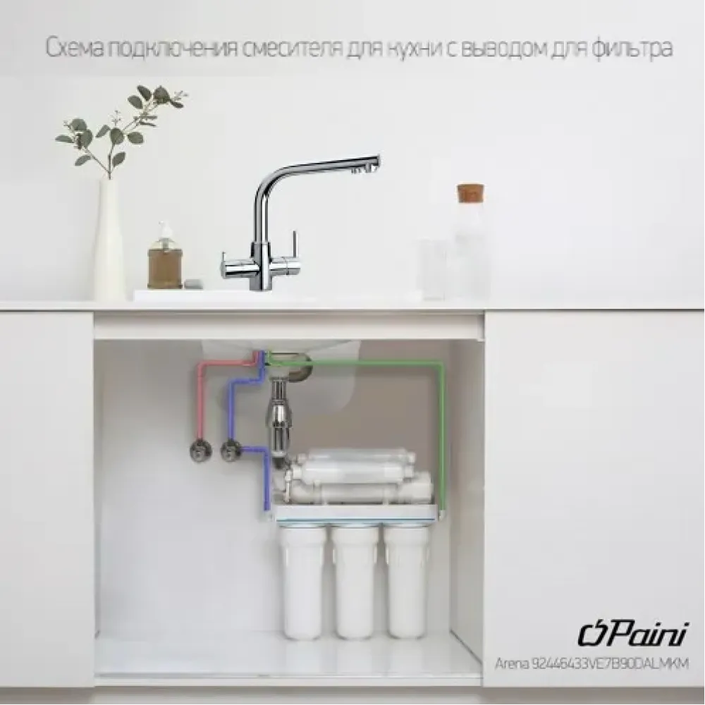Ищете сочетание стильного внешнего вида и практичности? Представляем смеситель для кухни итальянской фабрики PAINI авторской коллекции ARENA. В смесителе есть отдельный вывод подачи питьевой воды, поэтому вам не придется предусматривать лишние отверстия на мойке для соединения фильтра и отдельного крана для очищенной воды. Высокий поворотный излив смесителя позволяет менять направление потока воды, использовать глубокую посуду. Высокую надежность и долговечность смесителю гарантирует сочетание качественных материалов и современных технологий - залог четкой работы в течение длительного времени. Современные решения позволят вам снизить расход воды и заботиться о себе и окружающей среде. Сантехника для дома с ярким дизайном дополнит интерьер в современном стиле.