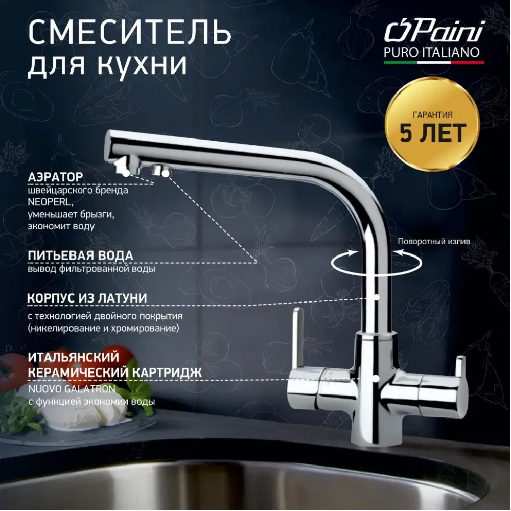 - Итальянский дизайн PAINI и гарантия качества 5 лет.