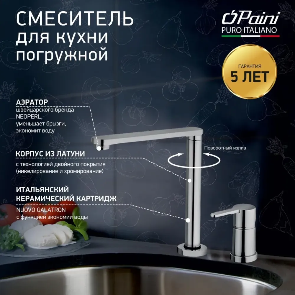 - Итальянский дизайн PAINI и гарантия качества 5 лет.