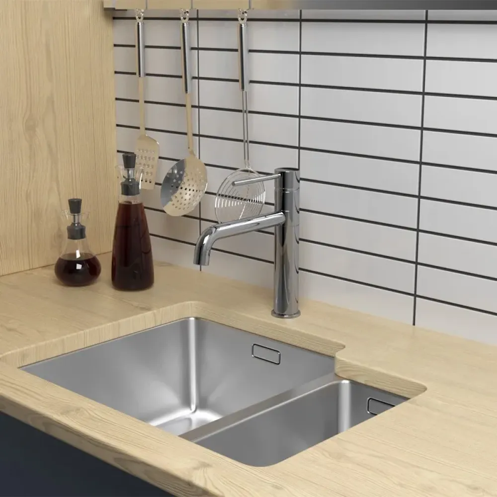 - Высокий корпус и поворотный излив дает больше возможностей при использовании на кухне.