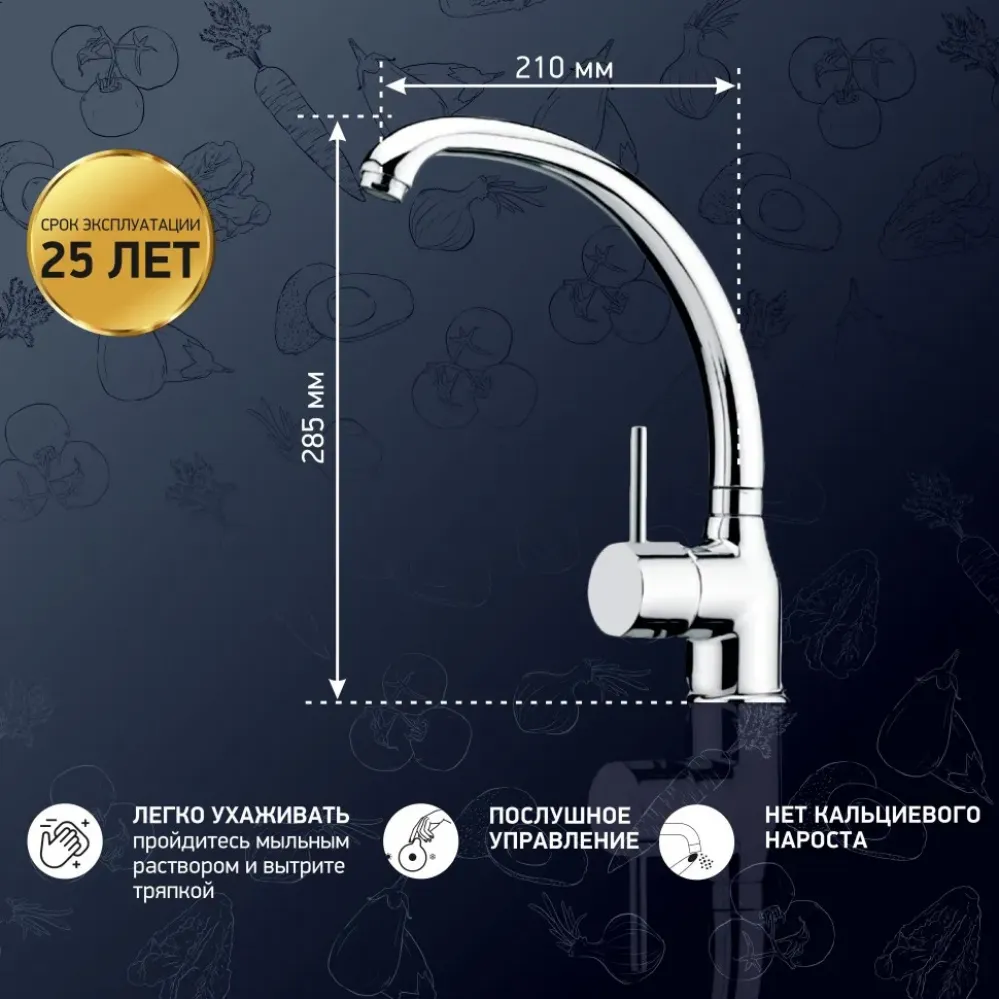 - Поворотный излив дает больше возможностей при использовании на кухне.