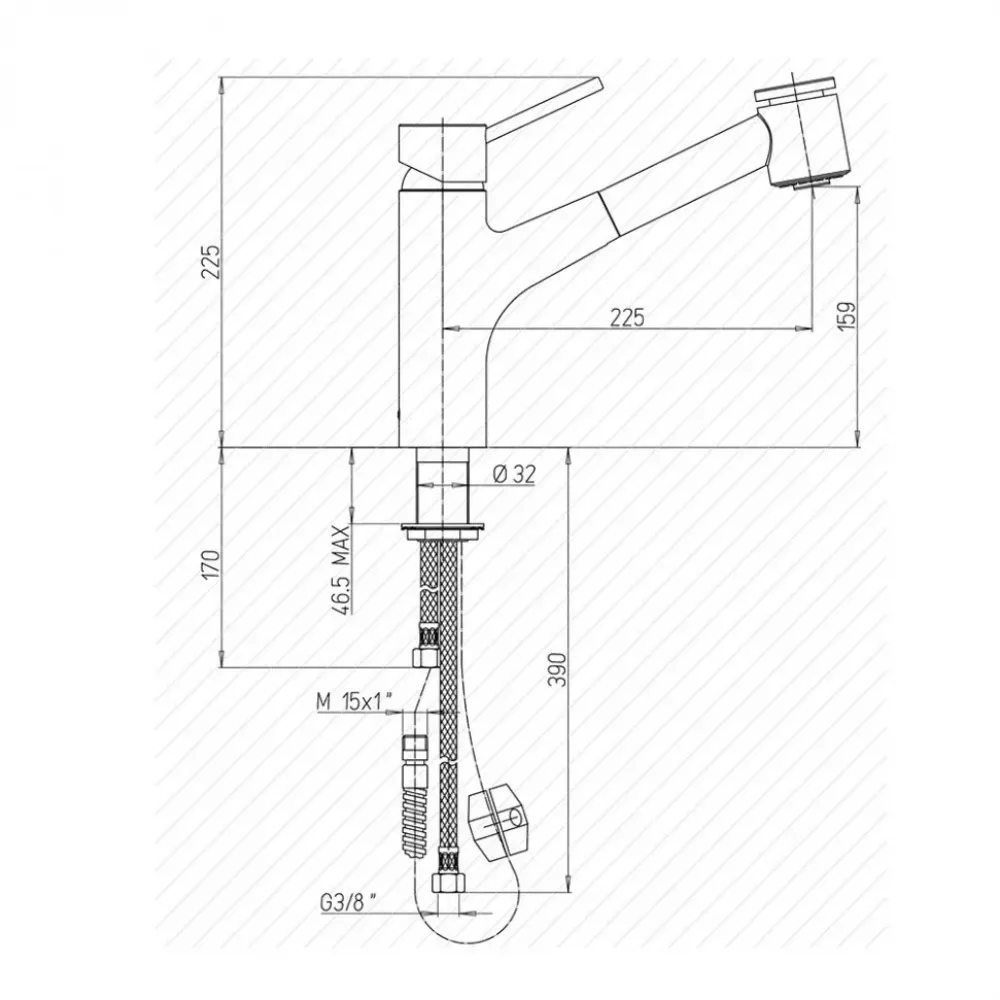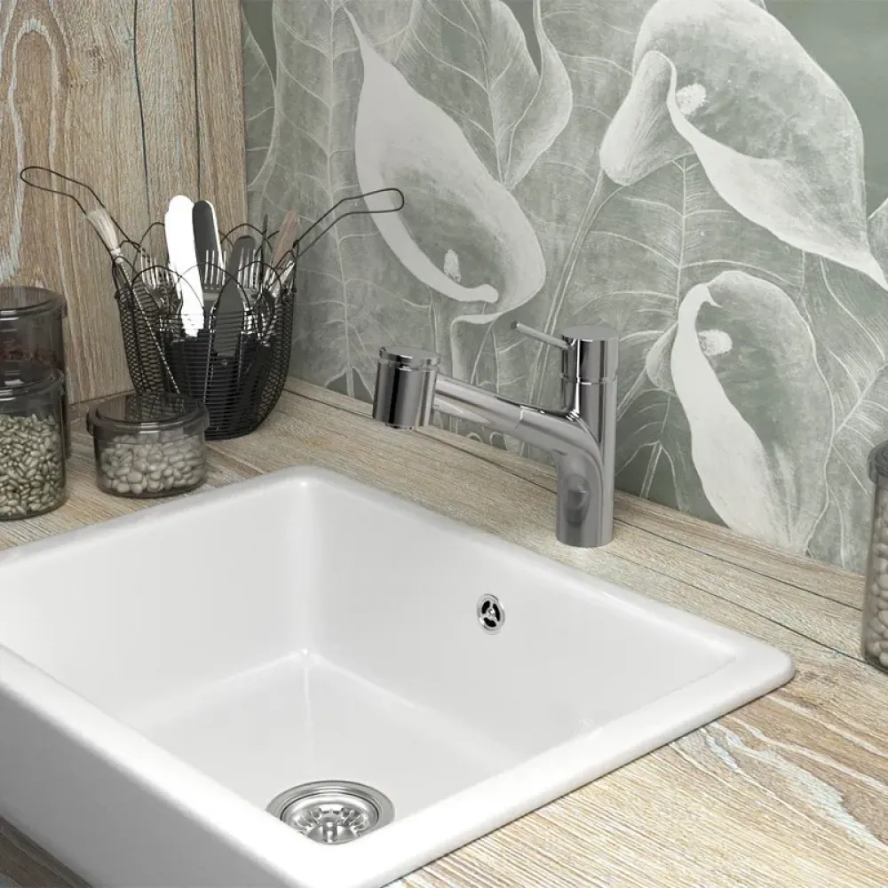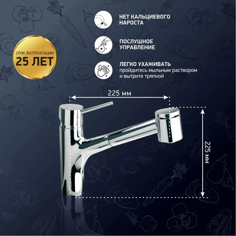 - Выдвижная лейка с несколькими режимами подачи воды, управление на корпусе лейки.