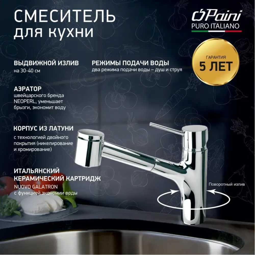 - Итальянский дизайн PAINI и гарантия качества 5 лет.